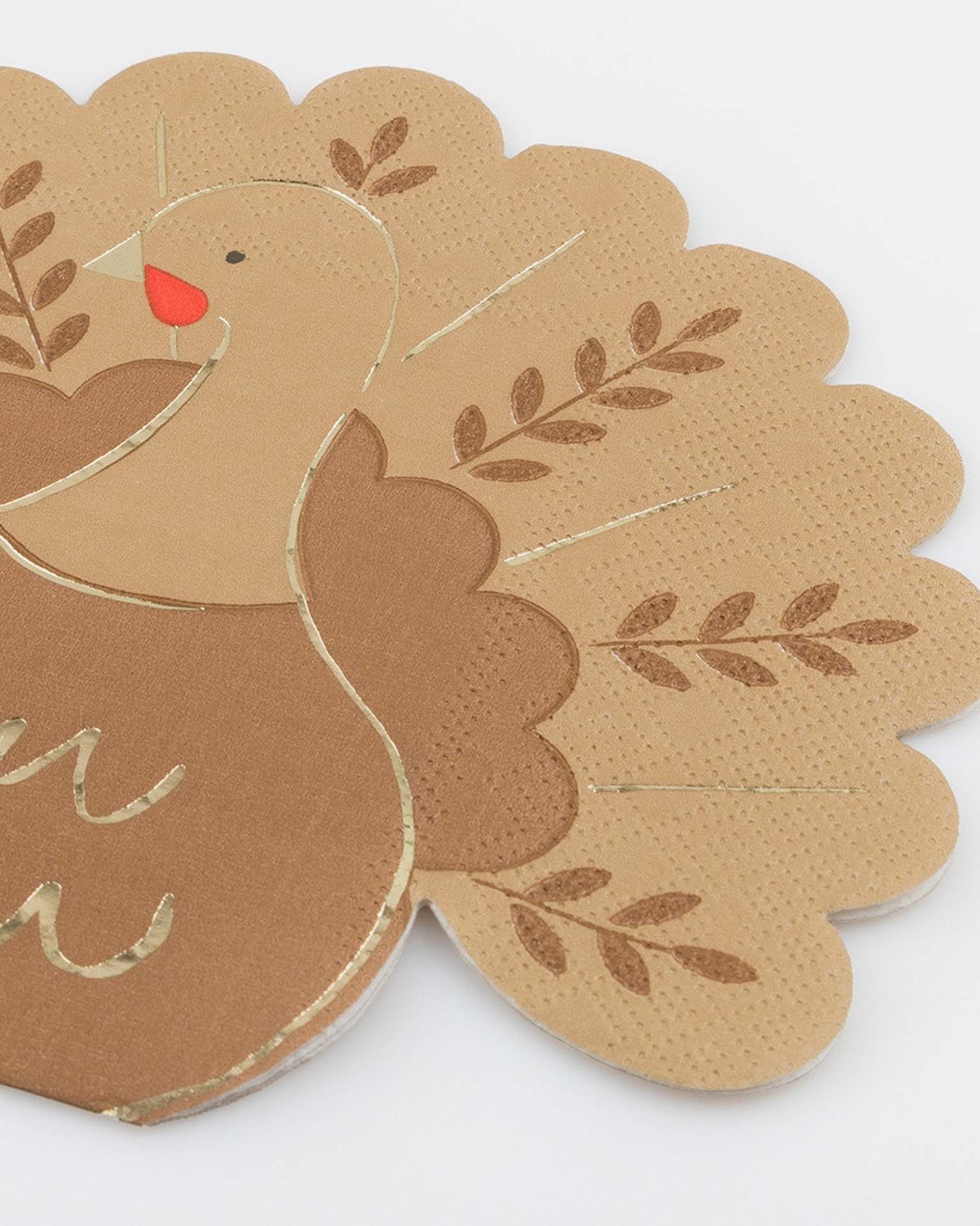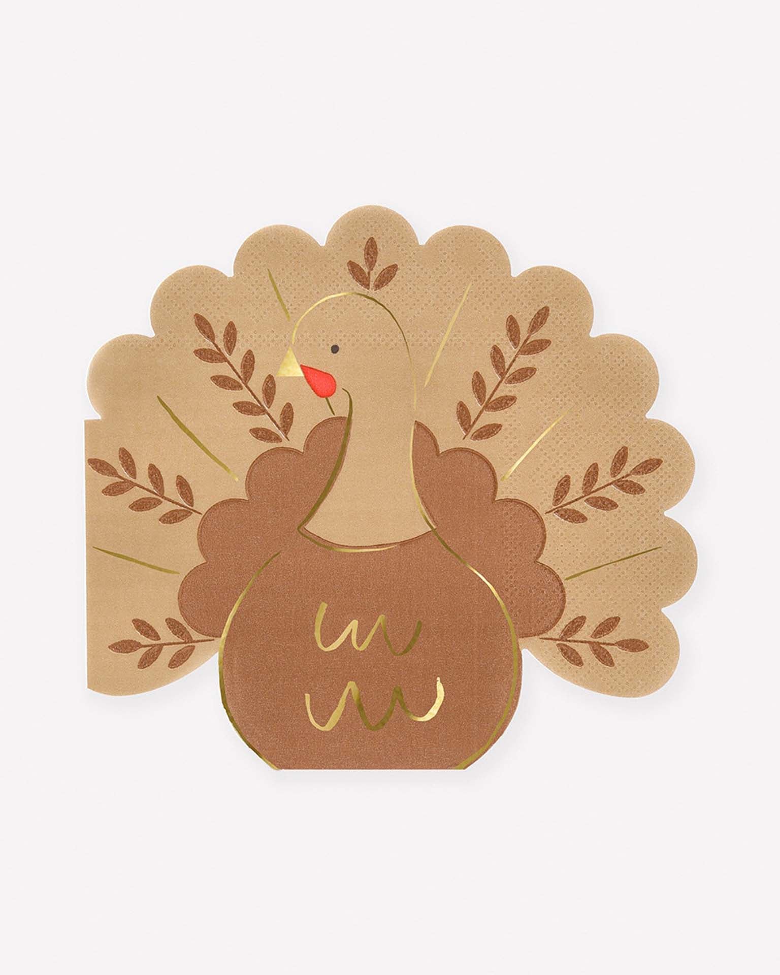 It's time to give thanks in style! Add charm and cheer to your Thanksgiving table with these turkey paper napkins. A blend of rustic fall hues, leaf designs and shiny gold foil accents create a traditional look with a contemporary twist, perfect for a celebration that's as vibrant as the season.