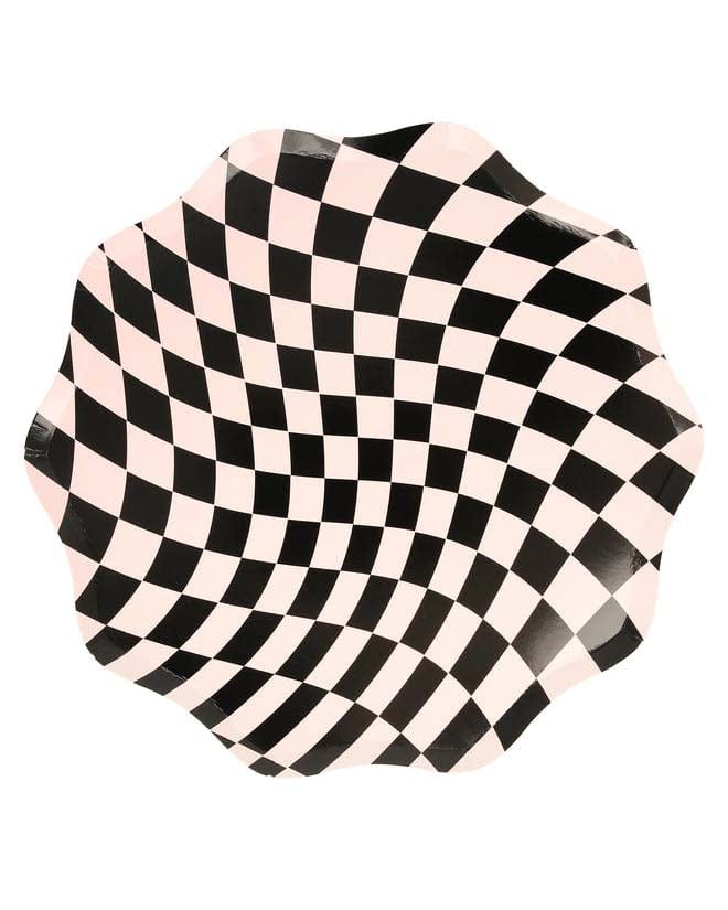 - Each pack contains 3 orange, 3 white and 2 pink plates with a black checkered pattern
