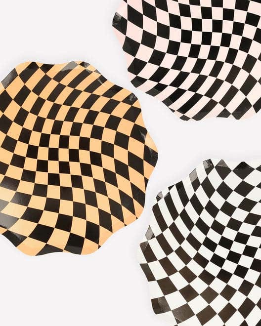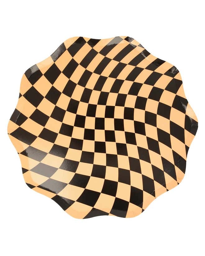 Check out these groovy Halloween plates! The combination of orange, white and pink, with a swirling checkered pattern, gives a fabulous 60s psychedelic vibe. They're perfect for parties for all ages, and can be mixed and matched with your other Halloween tableware.
