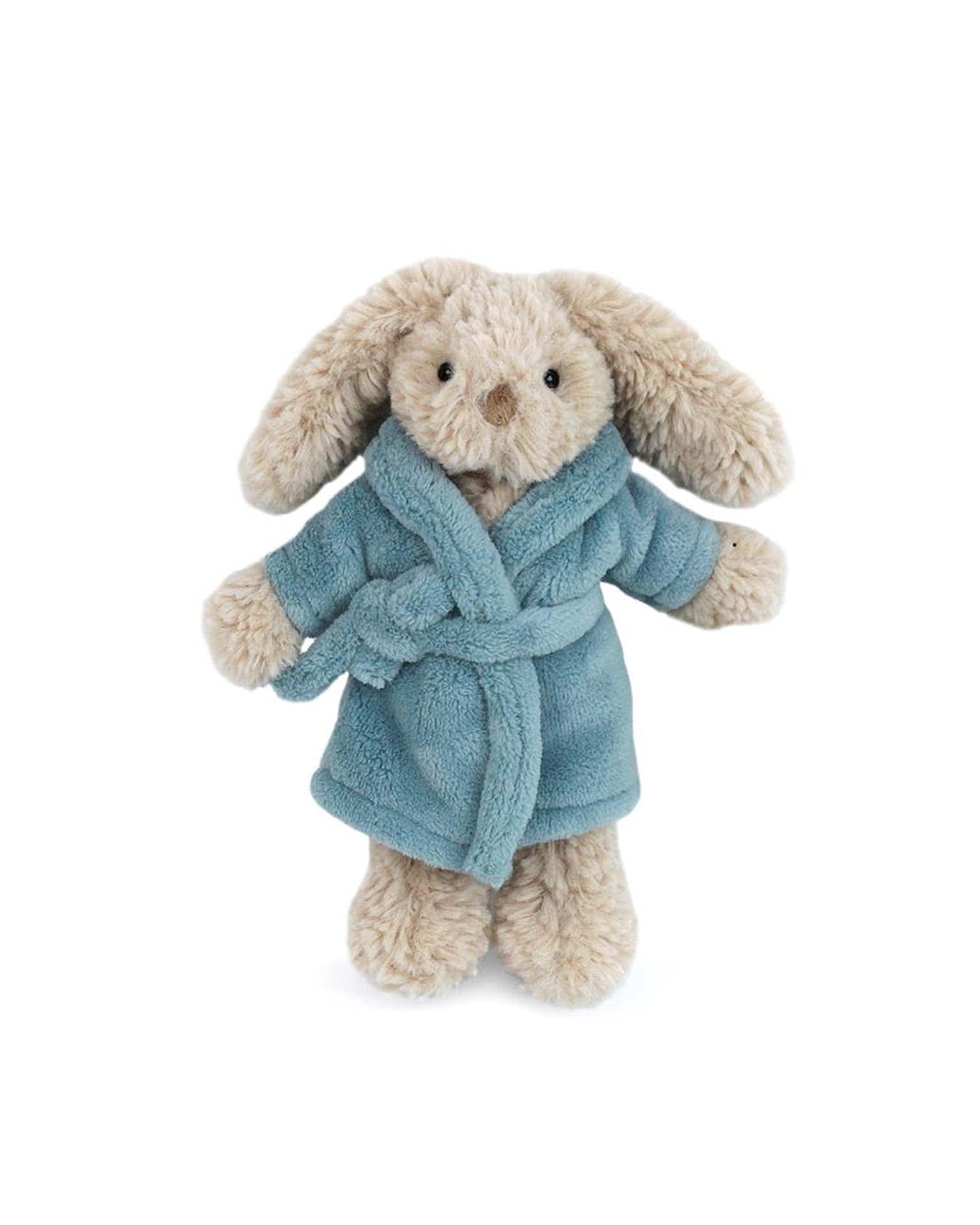 Introducing the Harlow Robe Bunny, your ultimate cuddle companion with a dash of charm! This sweet, sleepy bunny comes wrapped in a luxuriously soft velour bathrobe, ready to help you unwind after a long day. Imagine a cozy evening, just you and Harlow, flopping down together, its fluffy ears and snuggly robe magically melting your stress away. Harlow isn't just adorable, it's the master of chill vibes! So go ahead, shower this lovable bunny with affection, and watch as your worries hop away with your new, huggable friend!