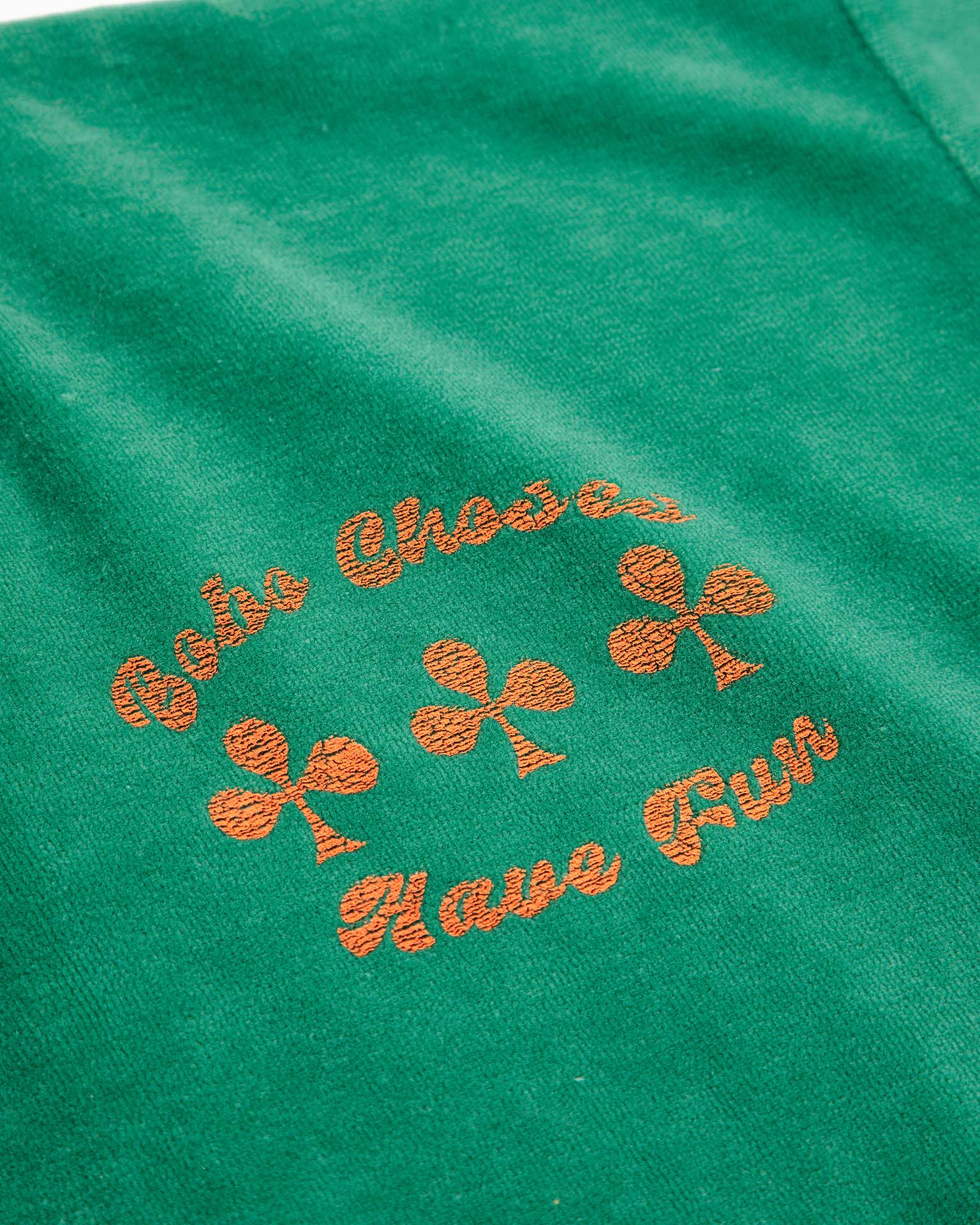 This velvet crewneck sweatshirt from Bobo Choses features a bright green color and a unique "Have Fun" logo on the left chest. The slouchy fit makes this sweatshirt perfect for pairing with any of the AW25 collection's bottoms.