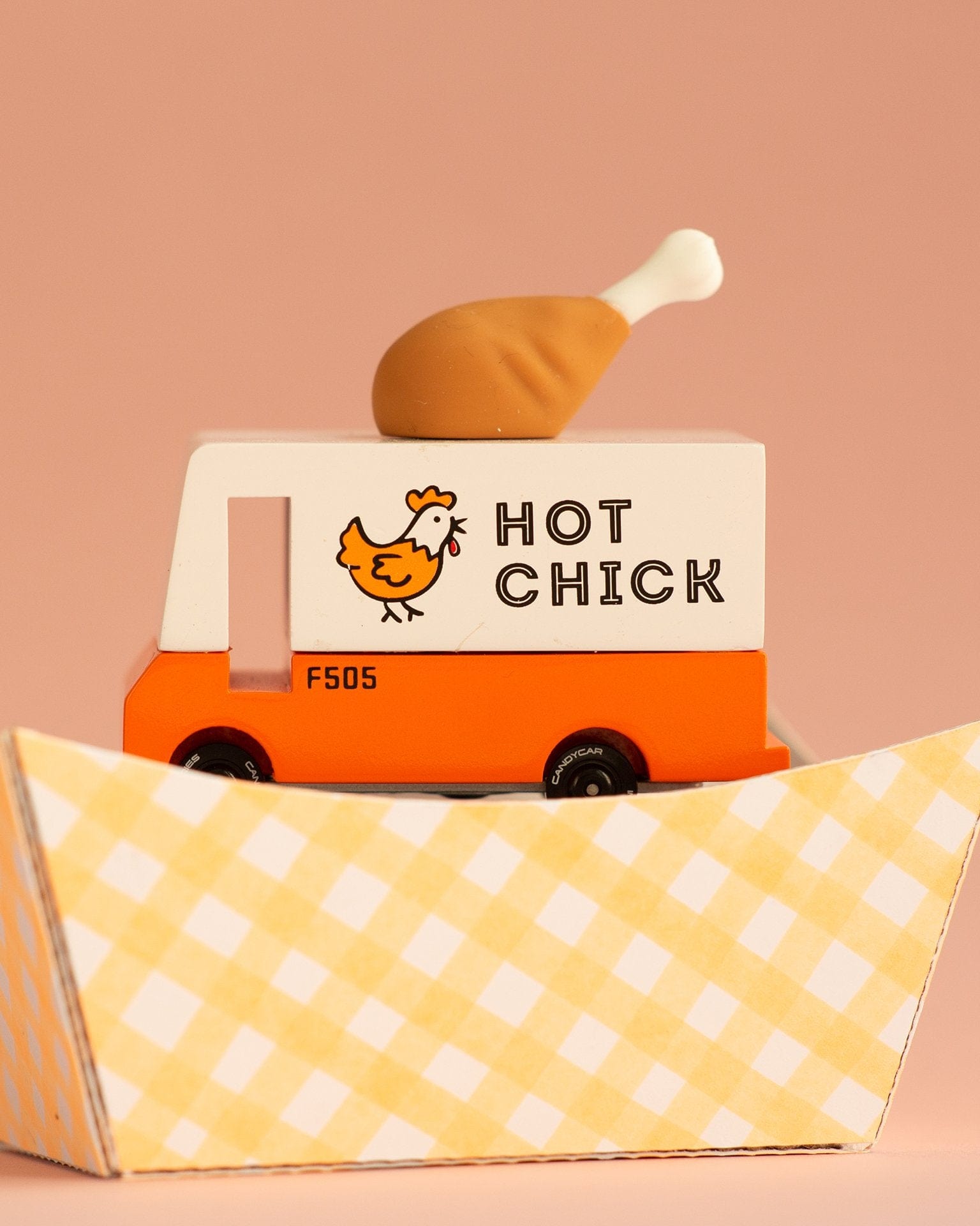 Candylab is not too chicken to admit it, fried chicken is their favorite. They love it so much they decided to make a Fried Chicken Van, complete with a fun rubber drumstick topper.