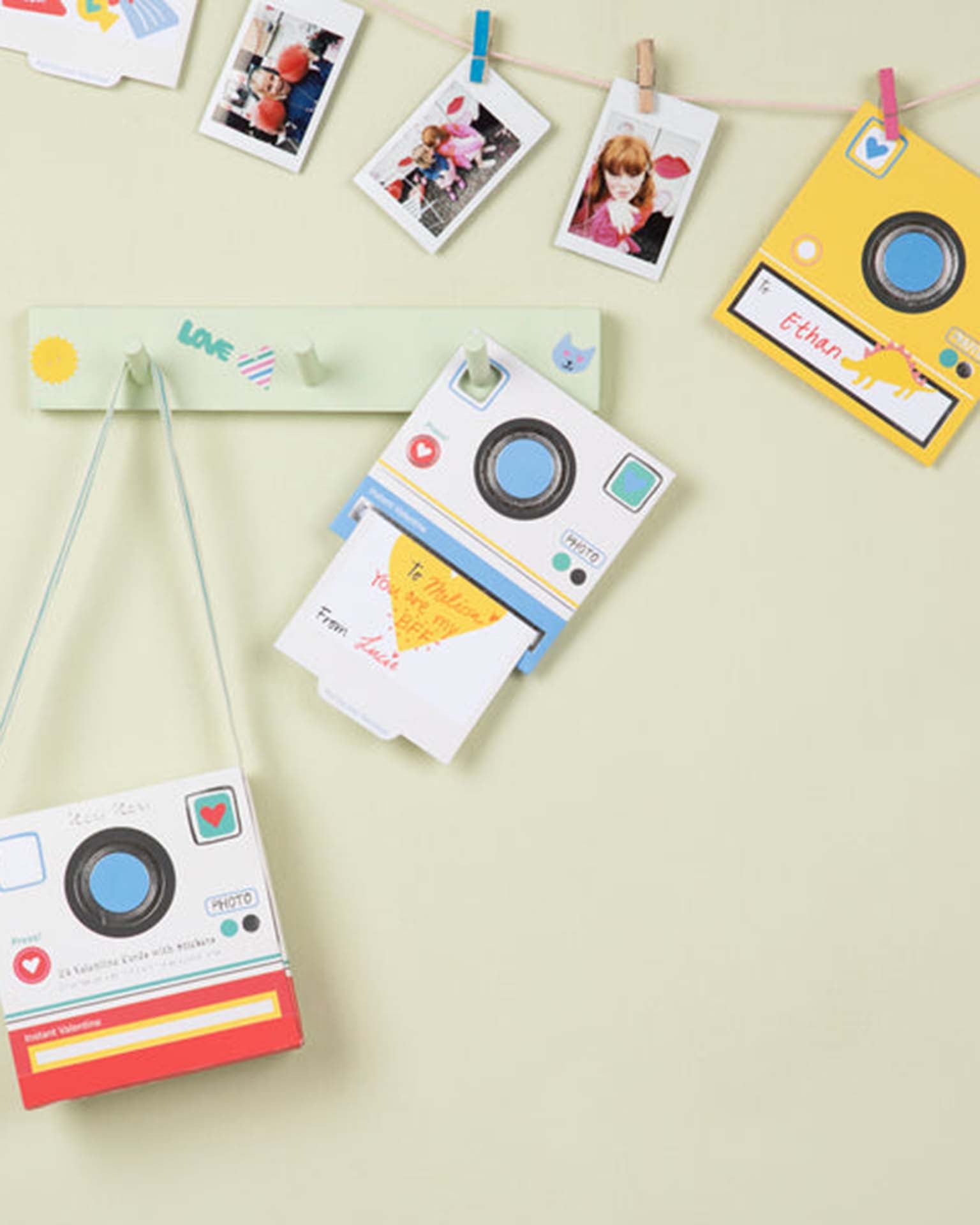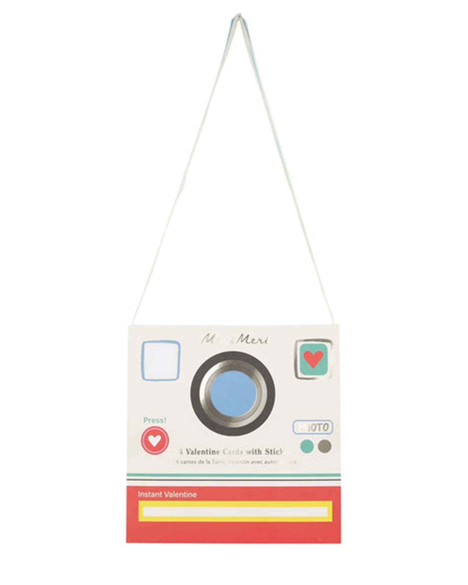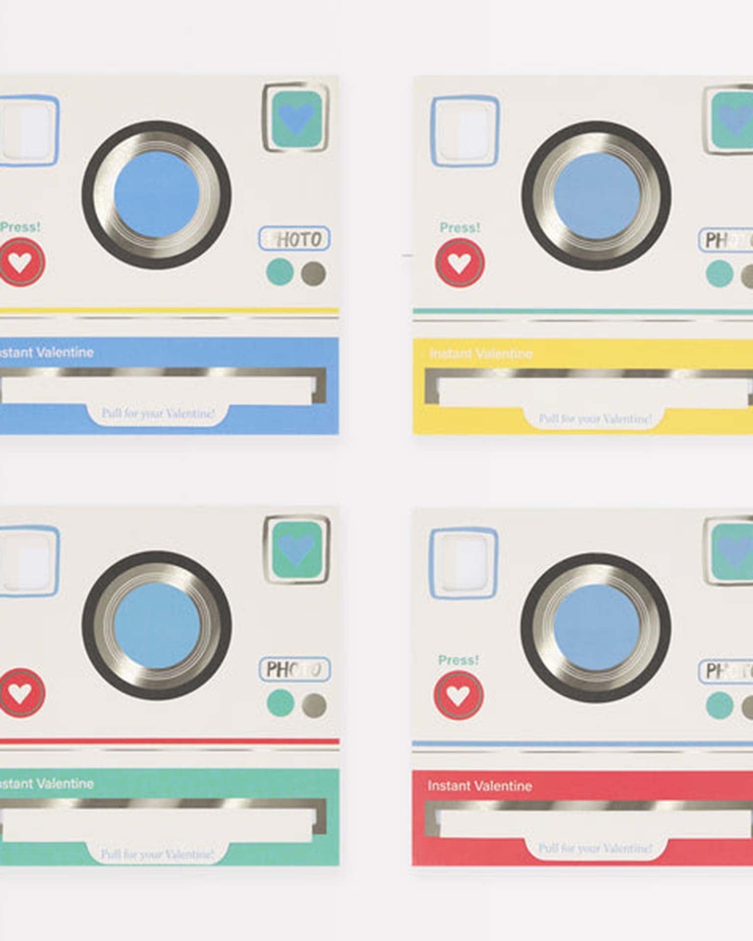 Click, click... These cleverly designed retro camera Valentine's cards are sure to delight. Each card features an insert with "To" and "From" spaces that pull out and resemble an instant photo! The set also includes sheets of stickers to personalize each card. All cards come stylishly packaged in a box that looks like an instant camera, complete with a ribbon strap. Cute!