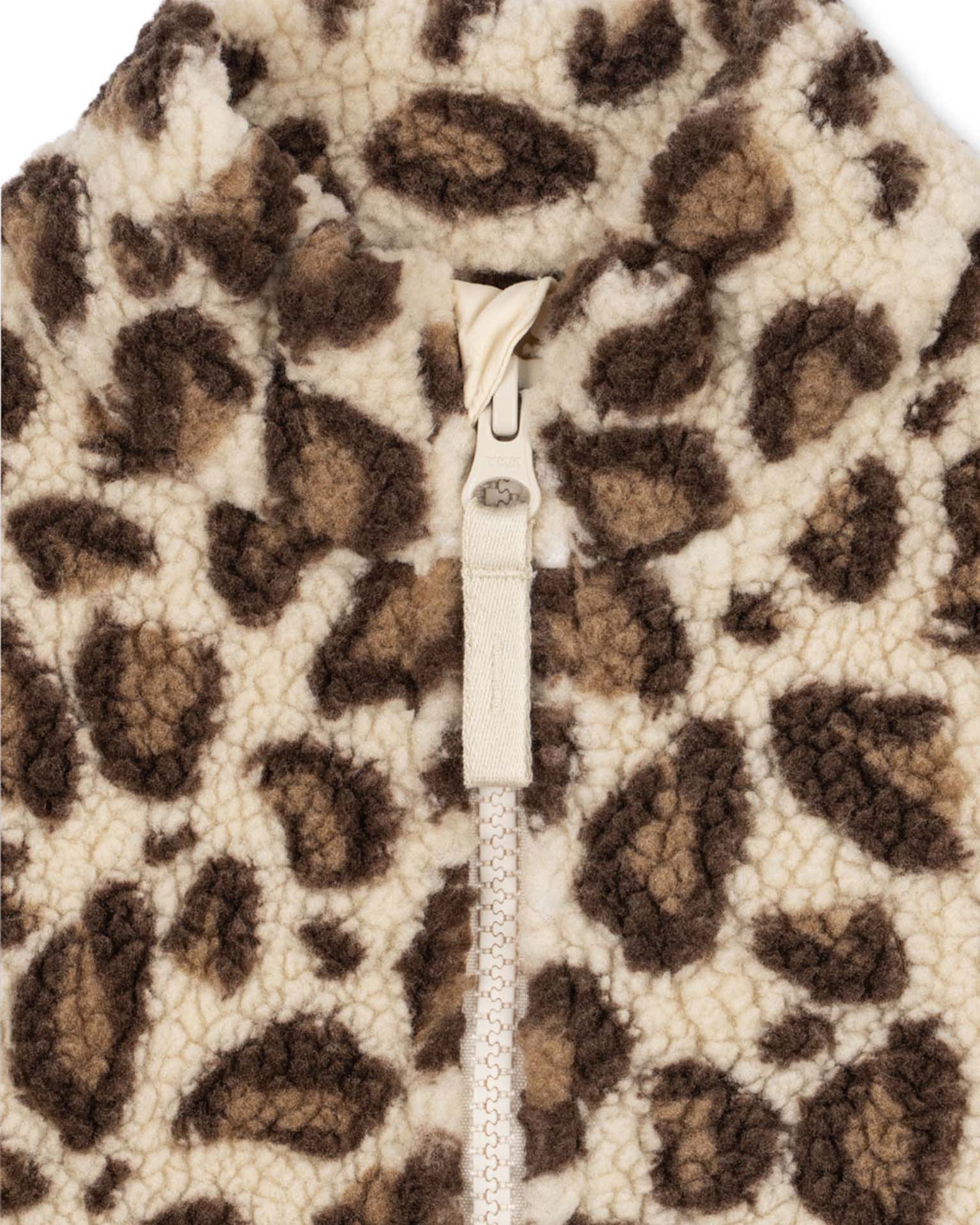 Warm pile jacket with soft fleece. Features a high collar and elasticated cuffs, and a full zipper closure in front that makes it easy to put on.