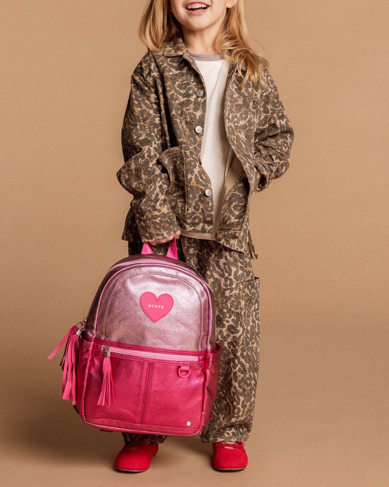 kane kids backpack in pink + hot pink colorblock
