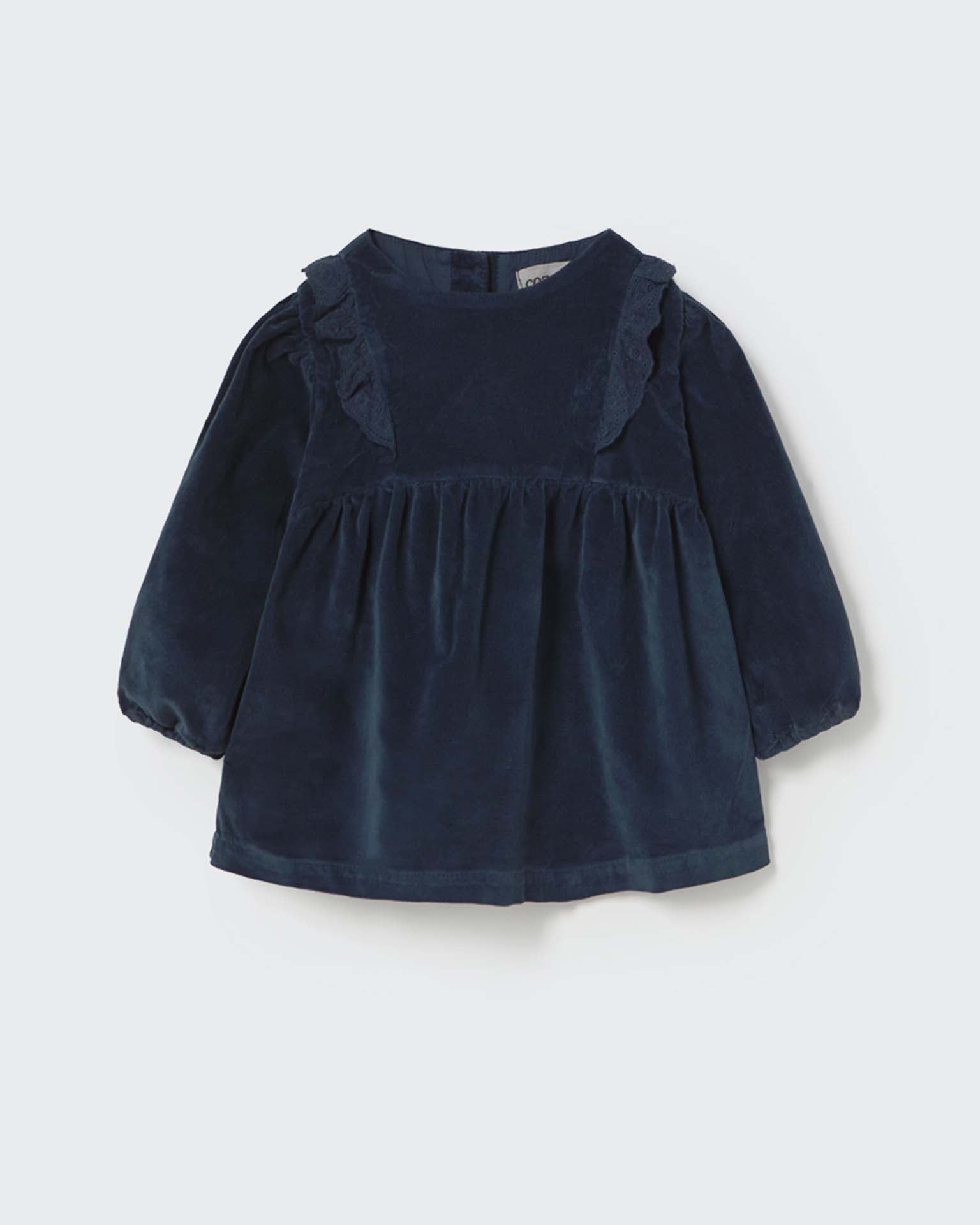 kenia velour baby dress in navy
