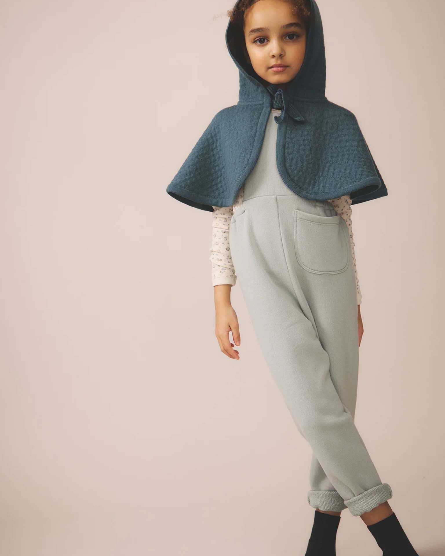 Everyday overall in softest organic pima cotton and modal french terry. Adjustable tie straps, elastic at back waist for ease.