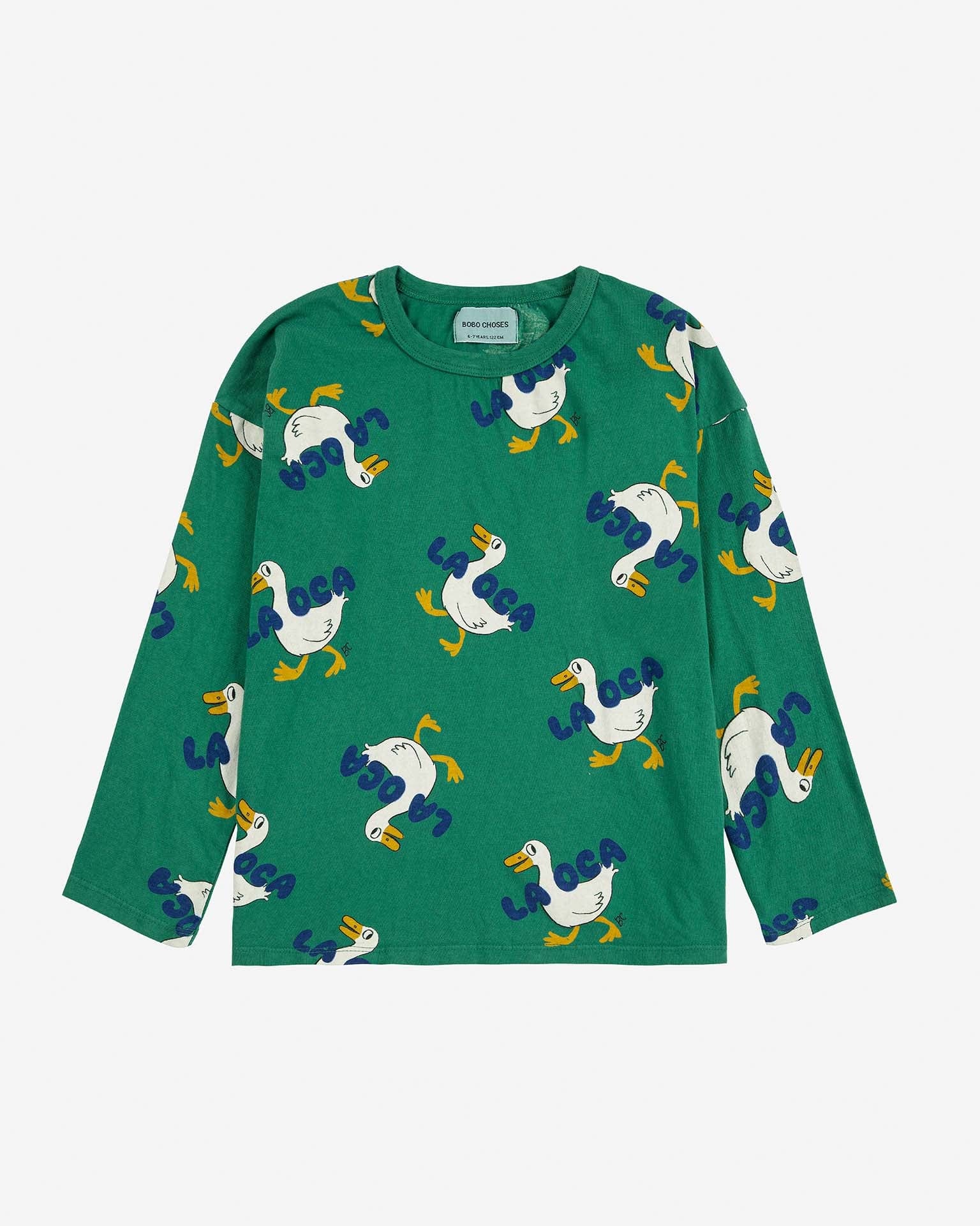 This la oca all over long sleeve tee from Bobo Choses is made of soft organic cotton, and pairs perfectly with the la oca jogger sweatpants.