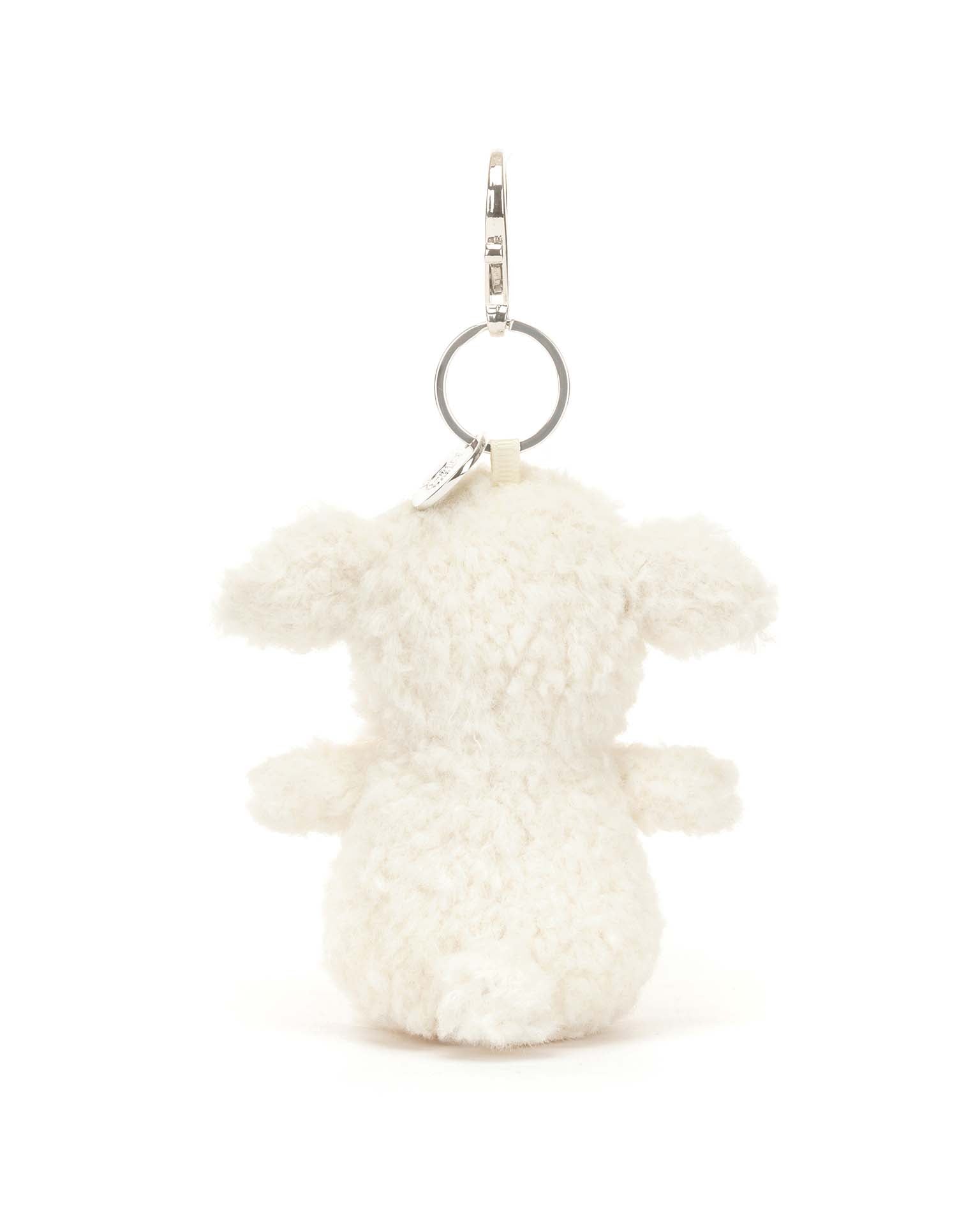 Adorably short and stout, the Little Lamb Bag Charm is such a joy. A bundle of fluff in cream fur, with a biscuit face and tulip ears, this lamb clips on with a silver clasp and shining Jellycat disc.