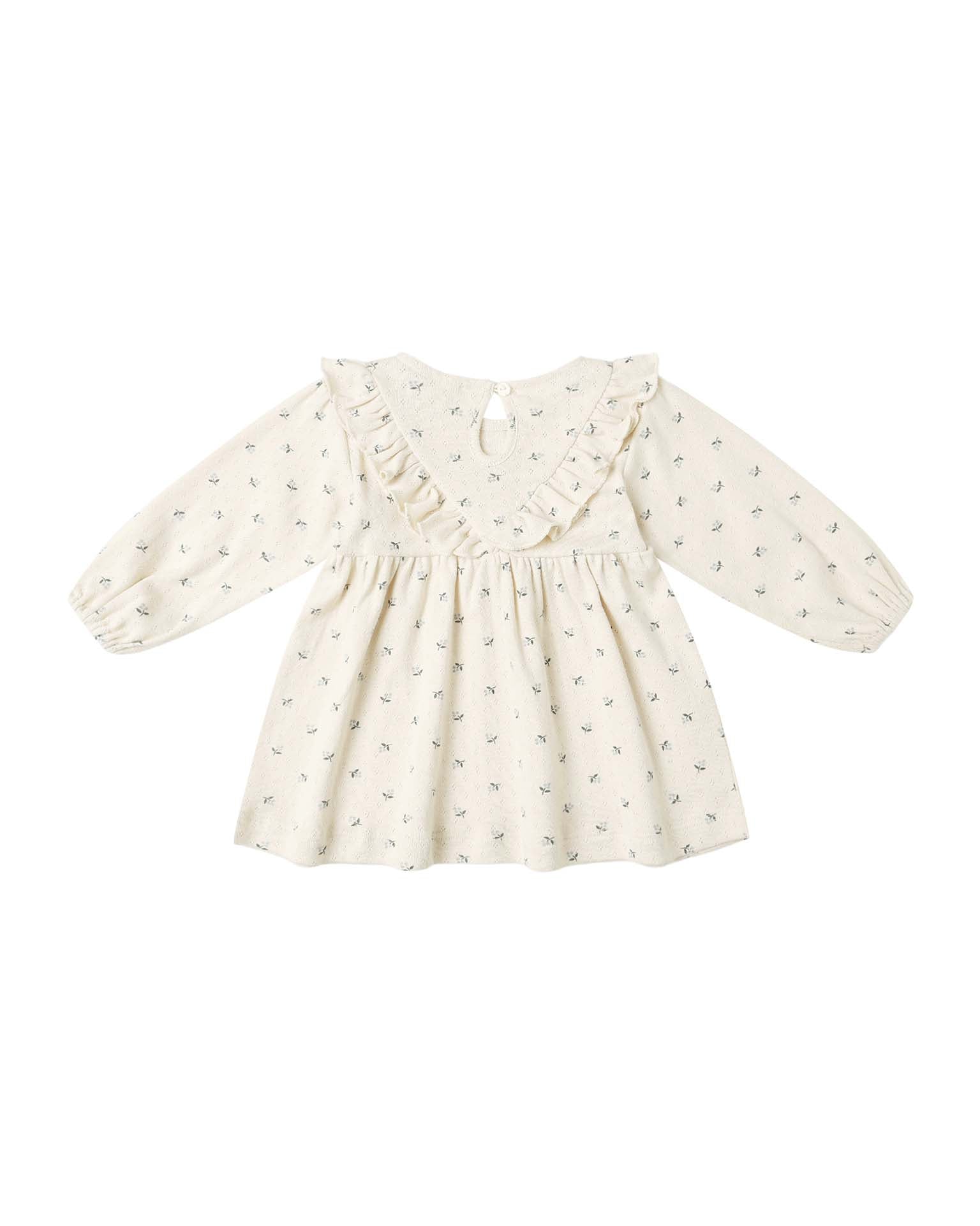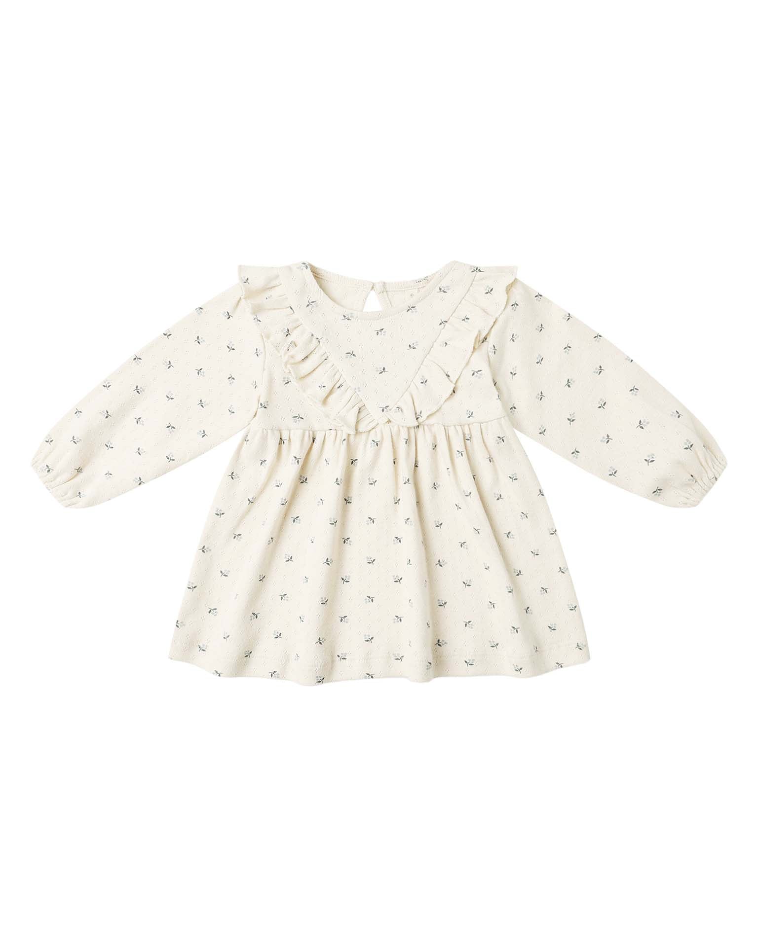 This long sleeve dress in our classic pointelle fabric features delicate V-ruffle detail, a button-back closure for easy changing, and matching bloomers for a sweet finishing touch.