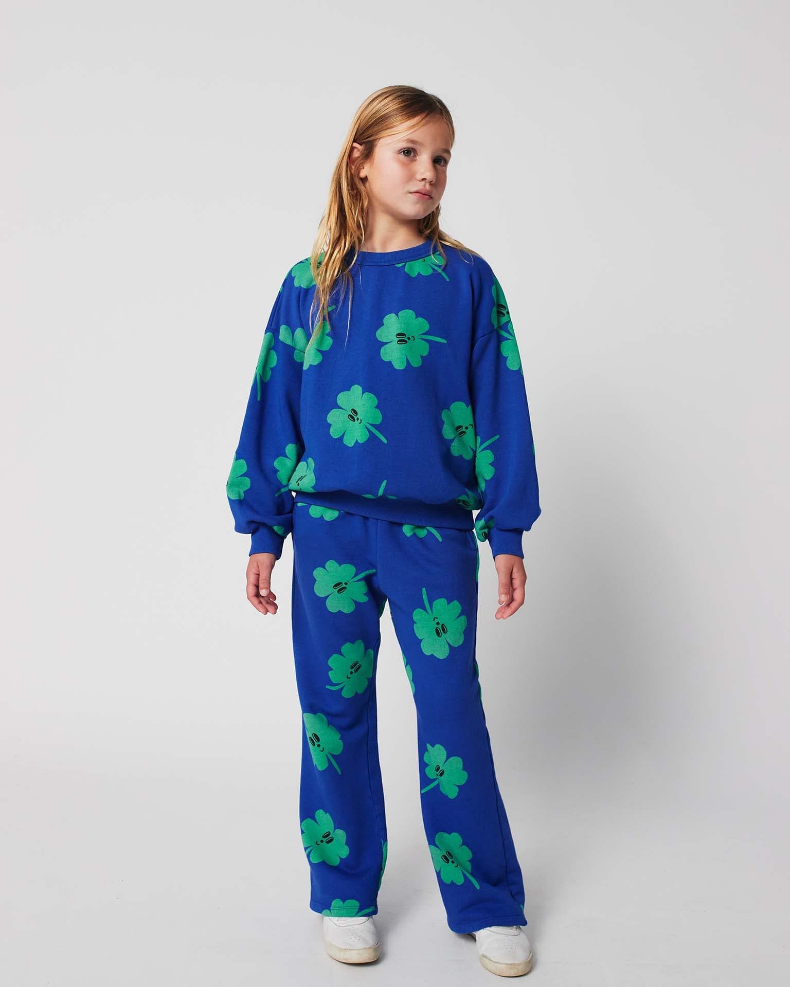 Lucky kids! This lucky clover crewneck sweatshirt from Bobo Choses is soft and cozy. Pair it with the joggers or the mini skirt!