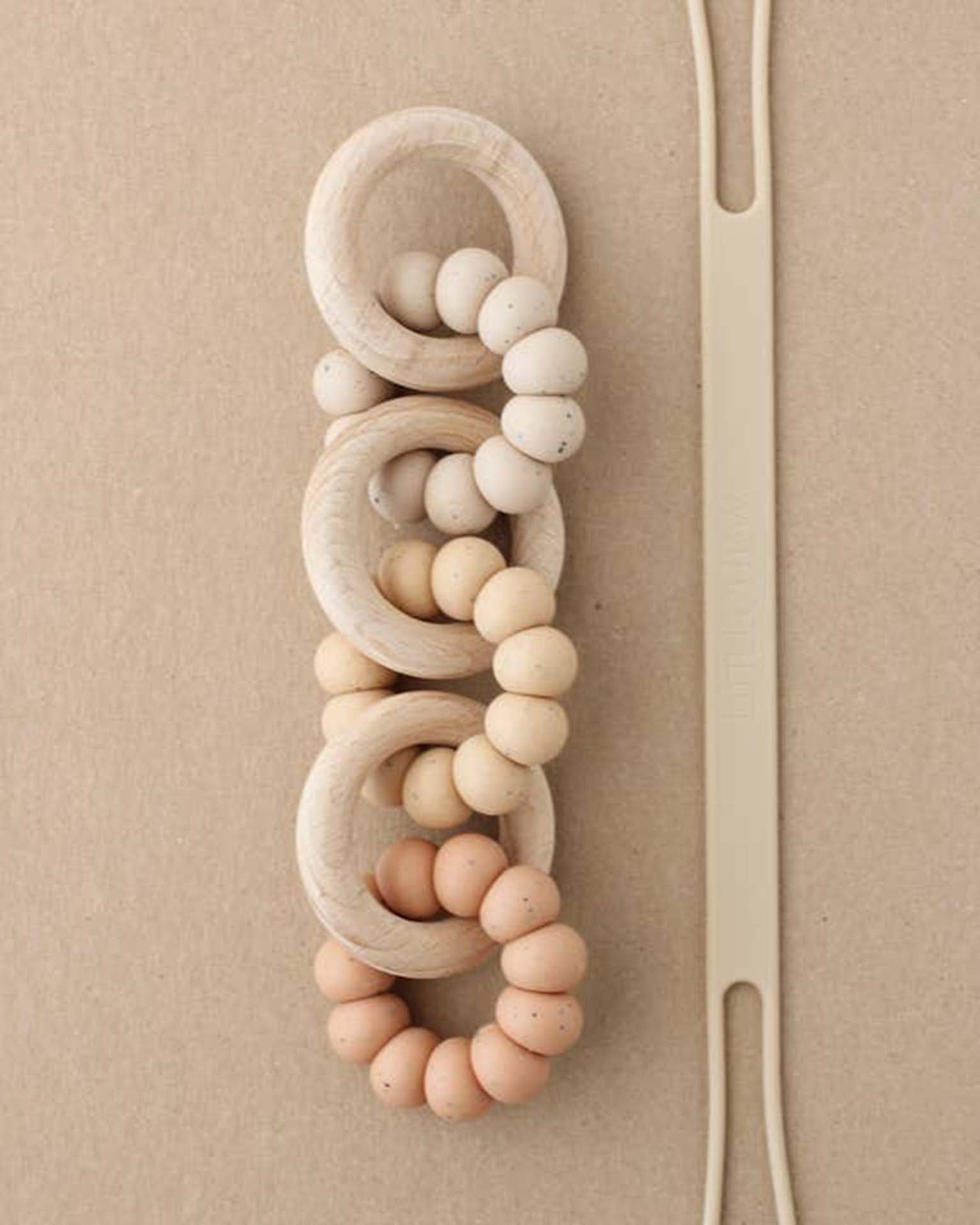 littleCHEW products are built with completely non-toxic food-grade silicon and 100% natural beech wood. Each piece is handcrafted with love and care under the highest safety code that meets USA and European standards. Each item is one of a kind, reusable and washable.