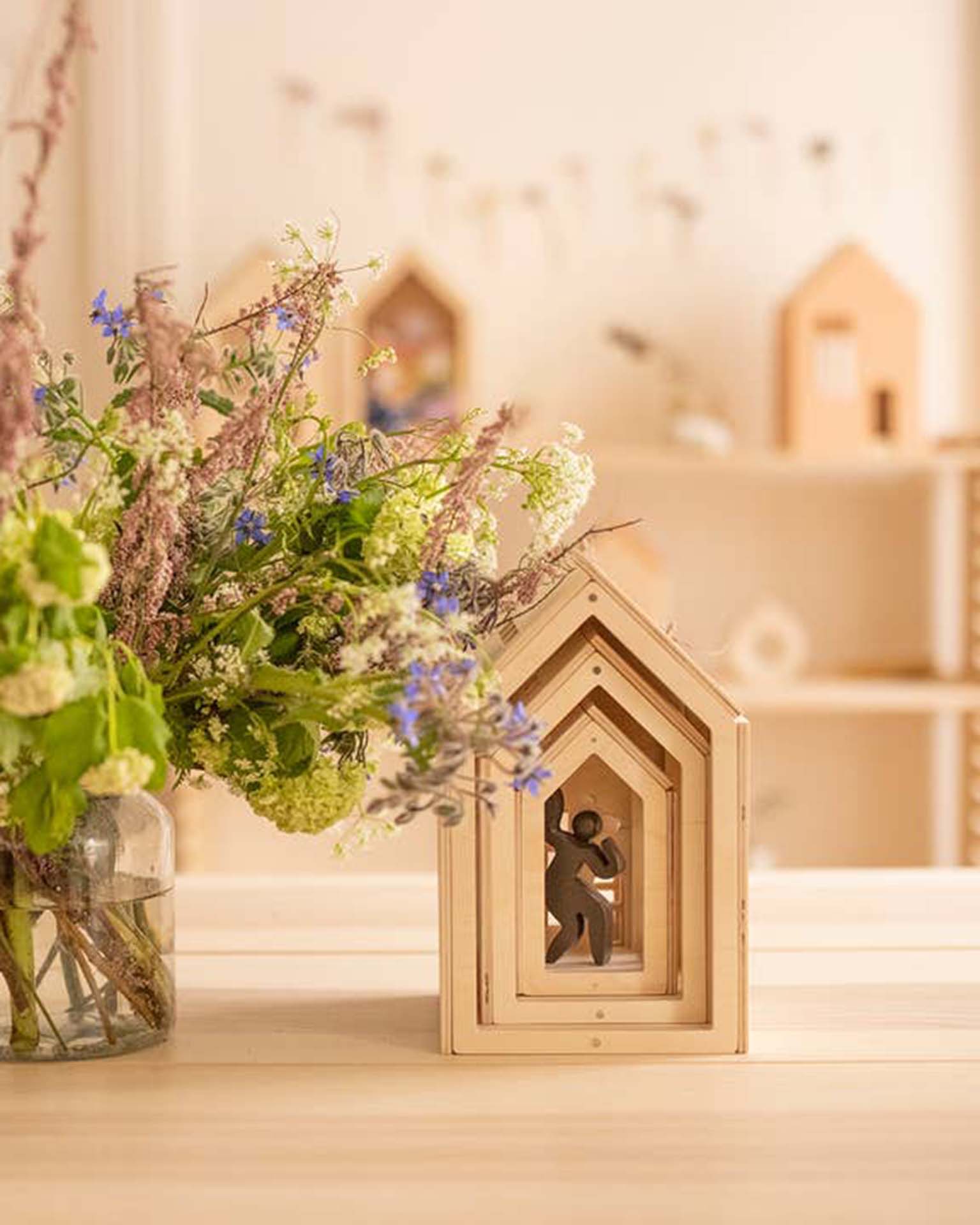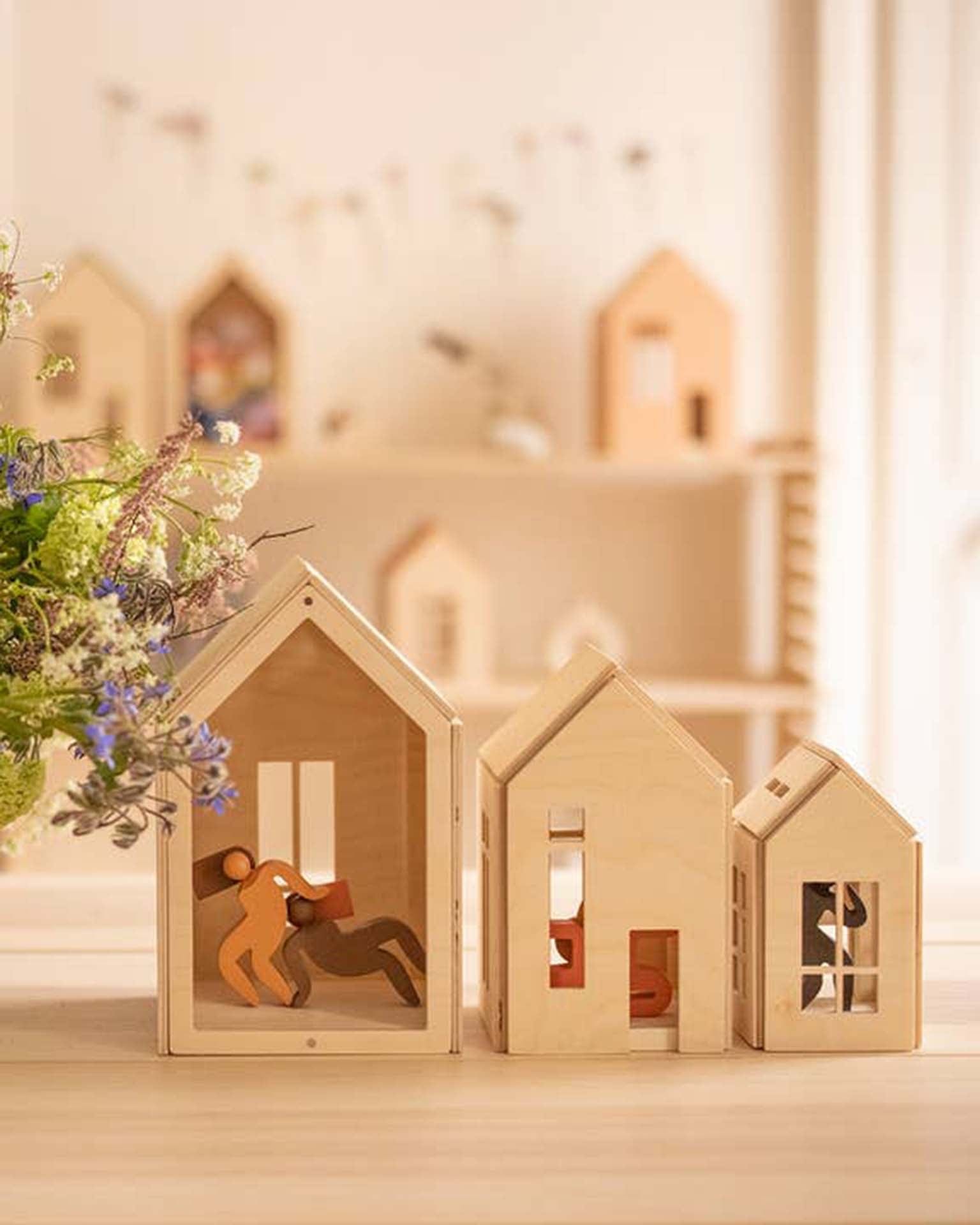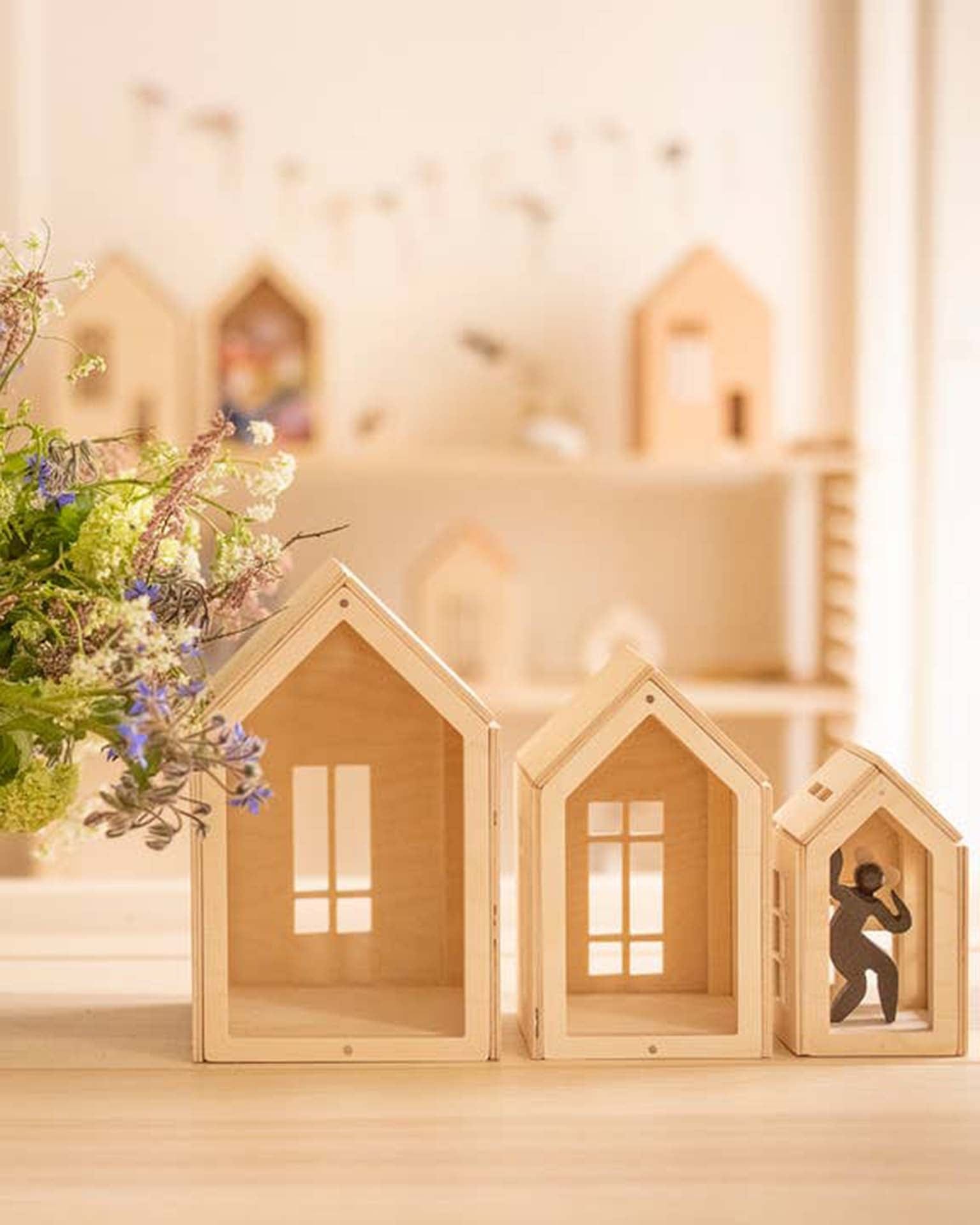 This set of 3 beloved wooden dollhouses on the magnets can be combined together as rooms or little village for tiny characters.