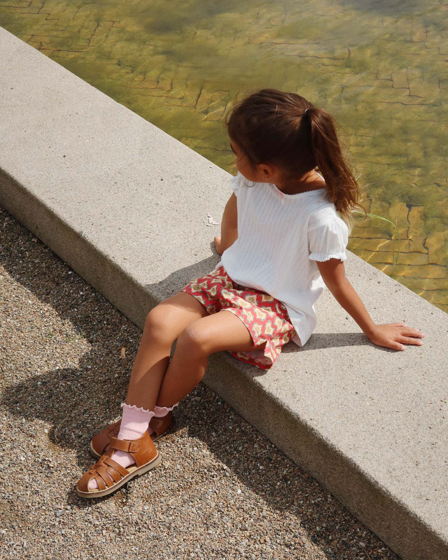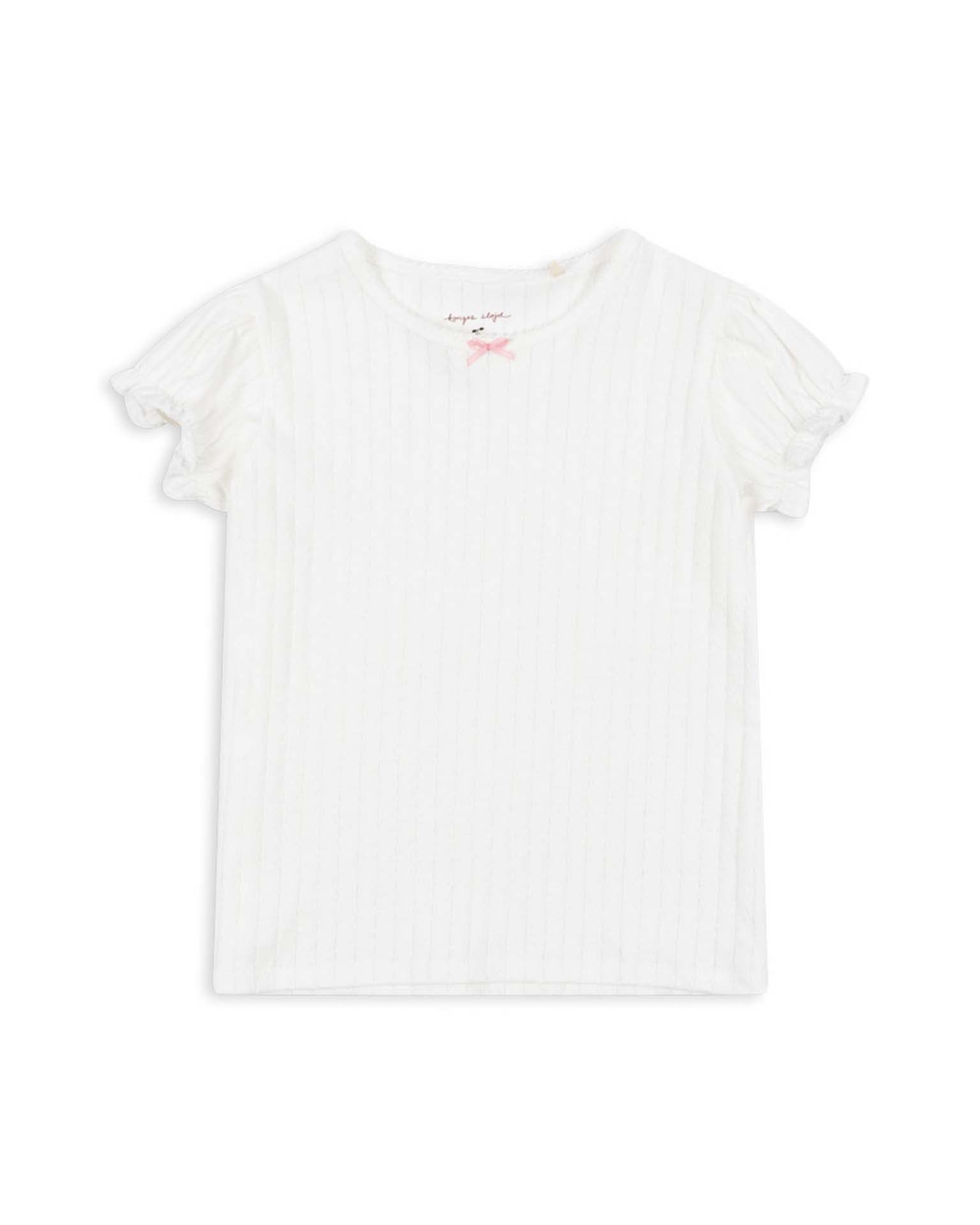 This soft and light organic cotton tee with puff sleeve effect and a pointelle pattern is a must-have basic.