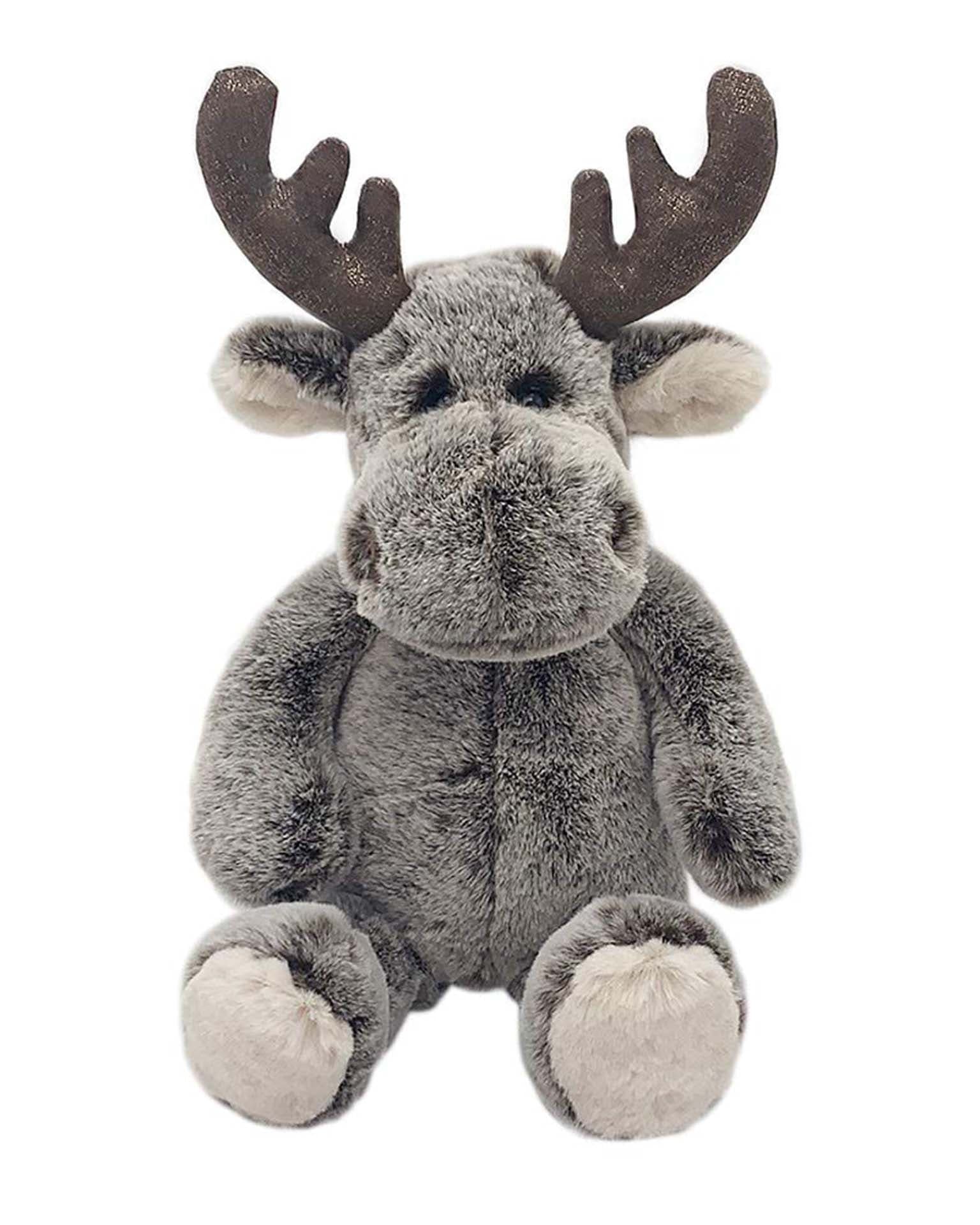 A unique moose with tonal fur, and novel shimmer to brown antlers. Pair with matching cuddle security blanket, for the perfect woodland baby gift.