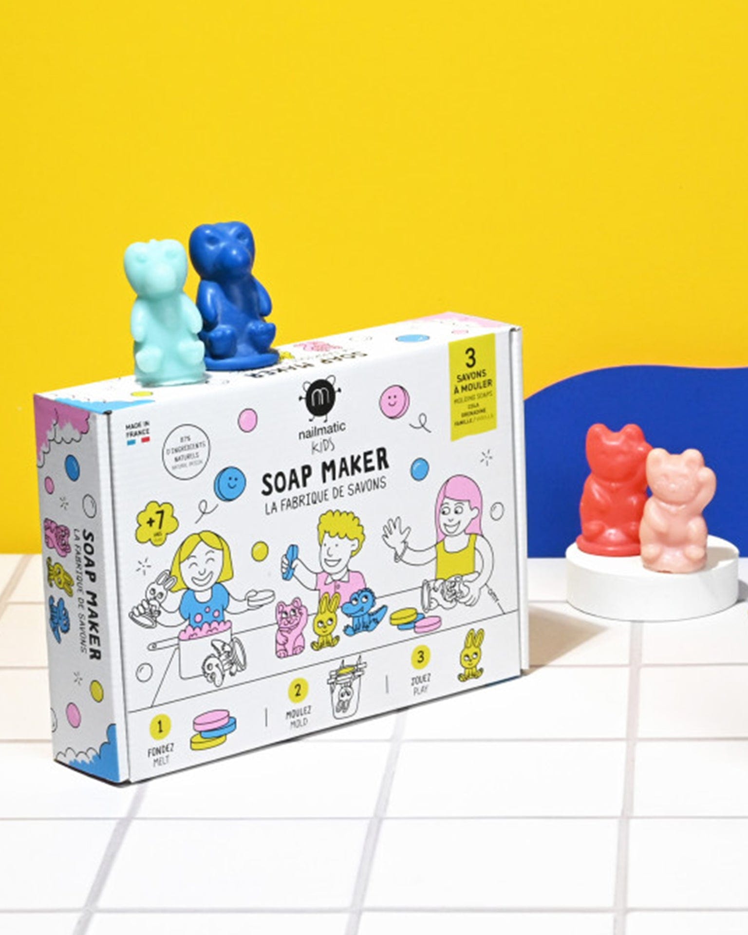 - Includes: 3 bars of soap and 3 molds