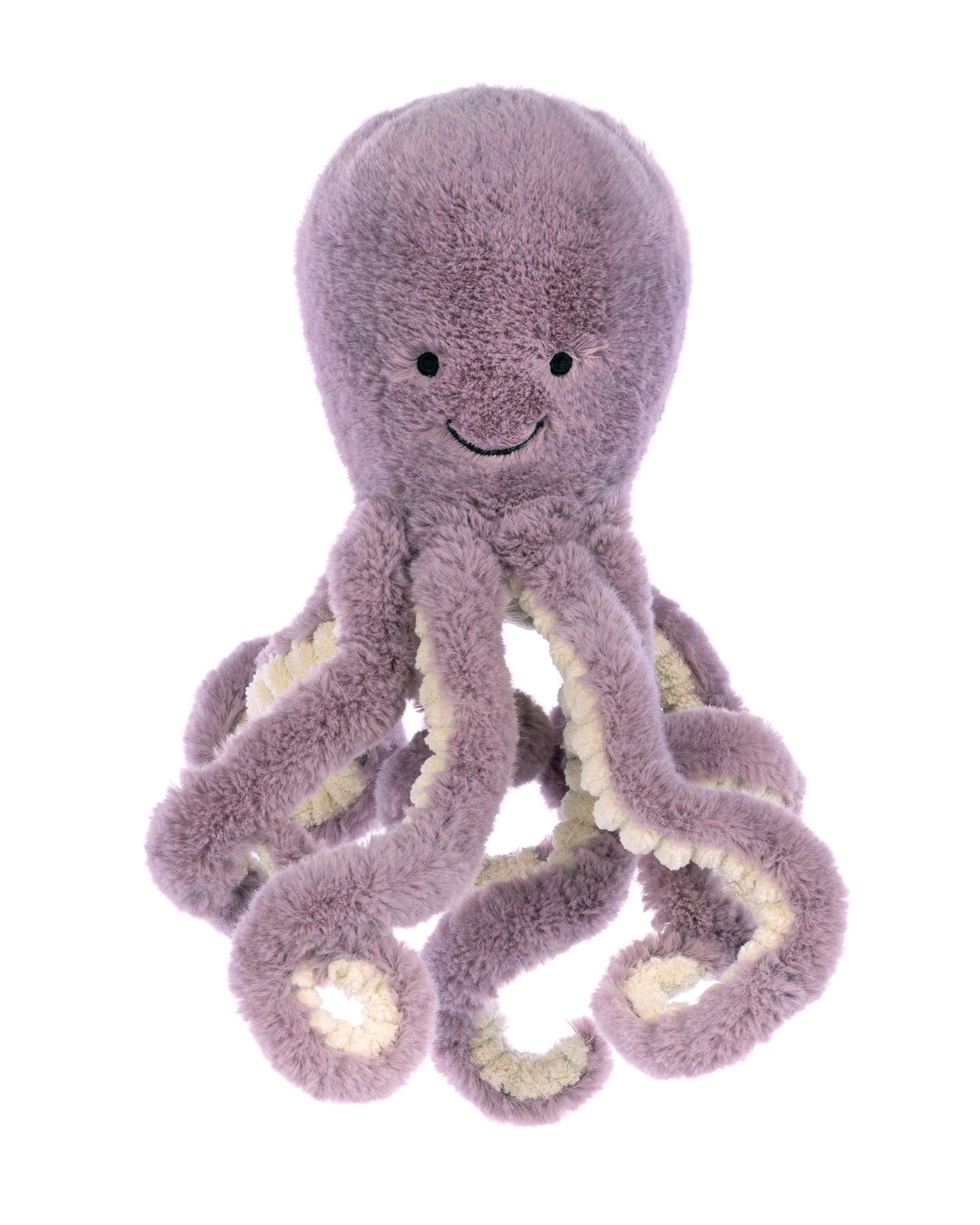 Maya Octopus is a seaside sweetie in soft mauve fur. With cordy tentacles and a sweet stitchy smile, Maya is the perfect cuddling companion for sea-faring friends!