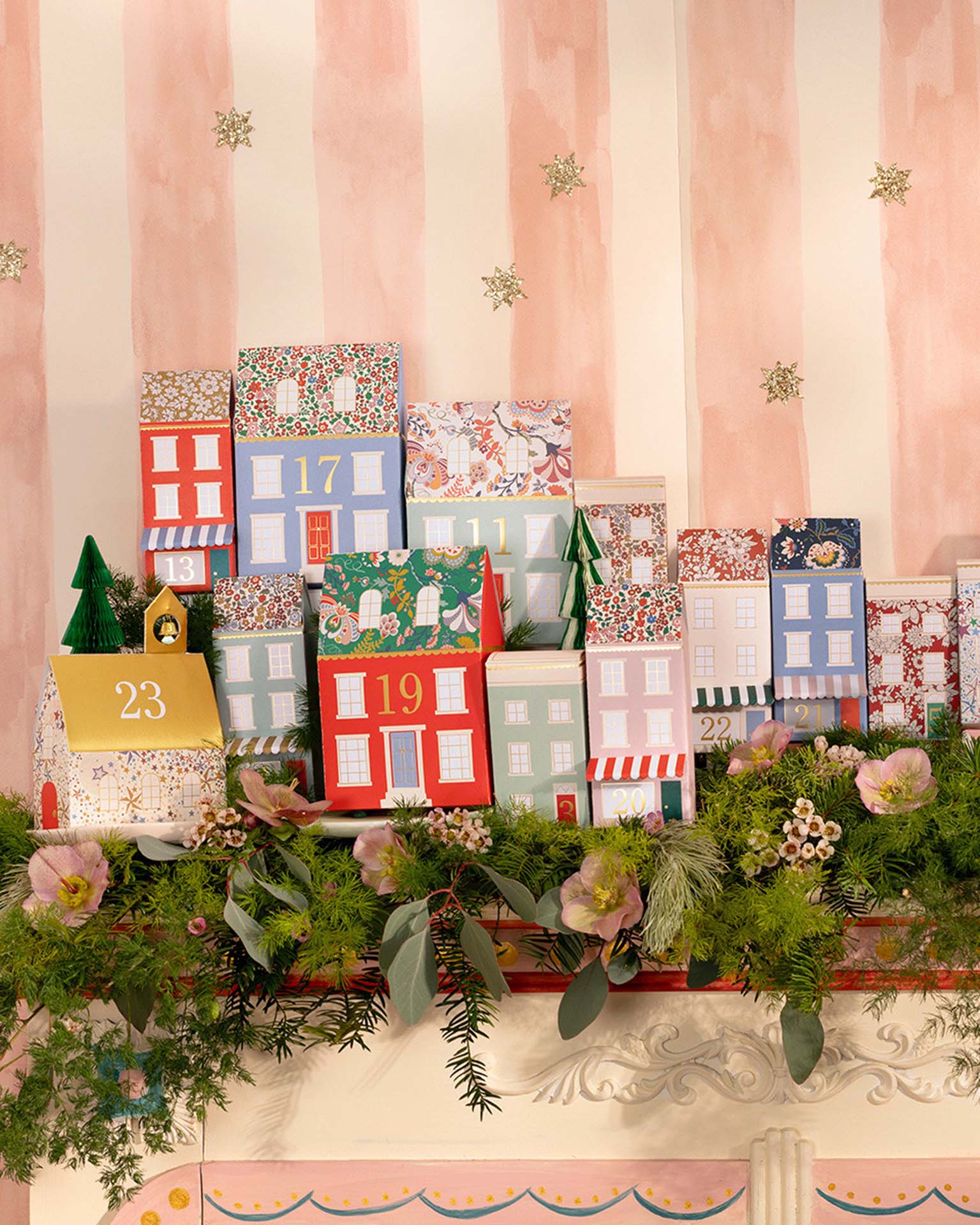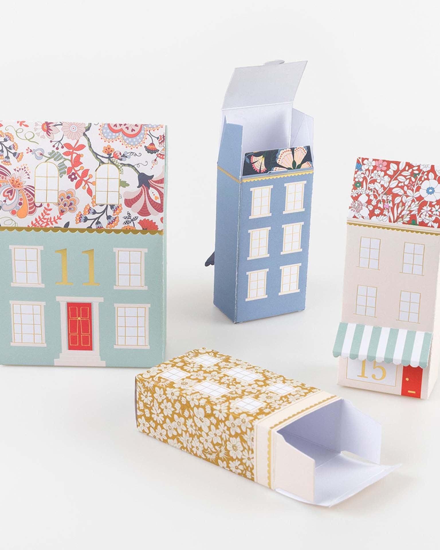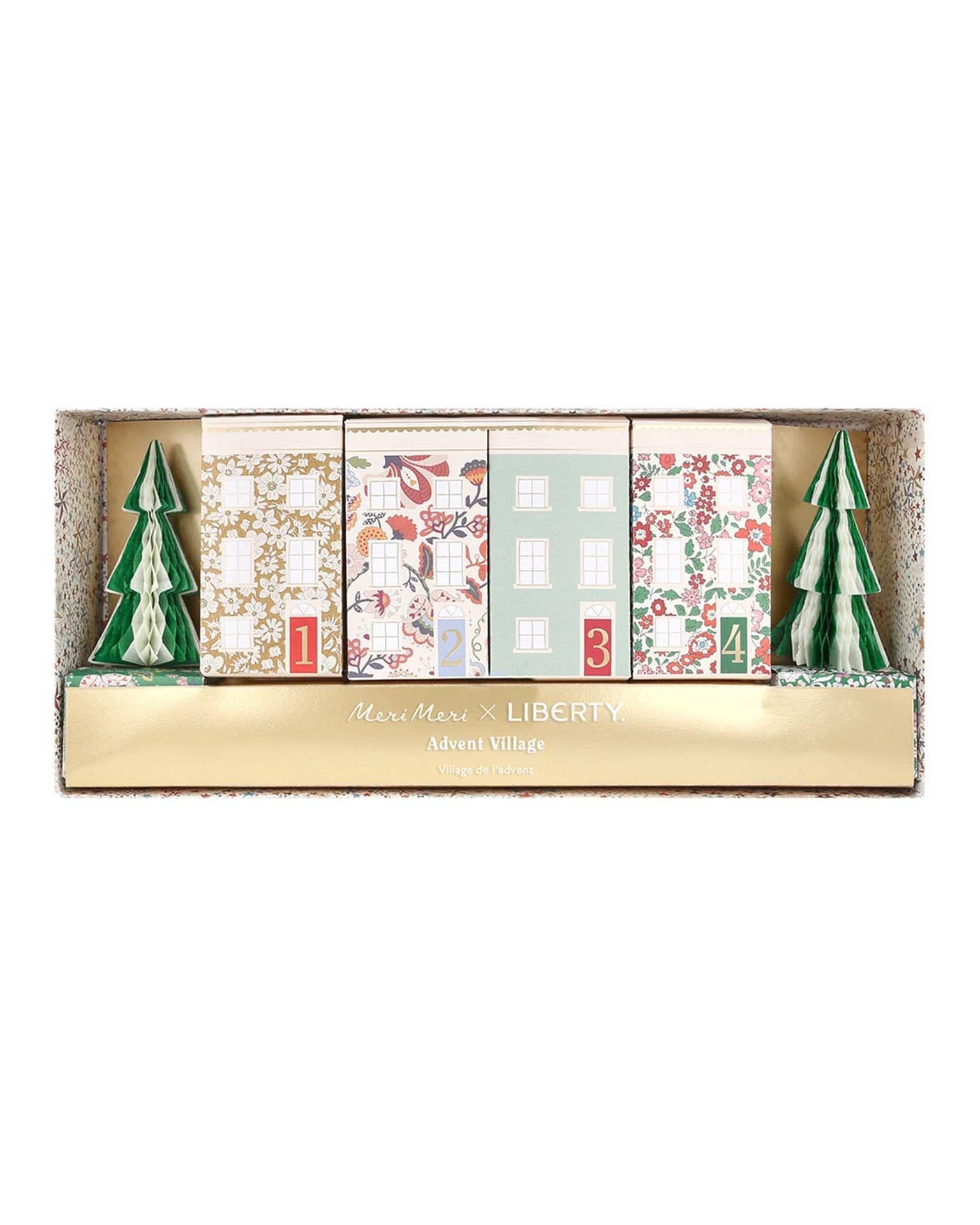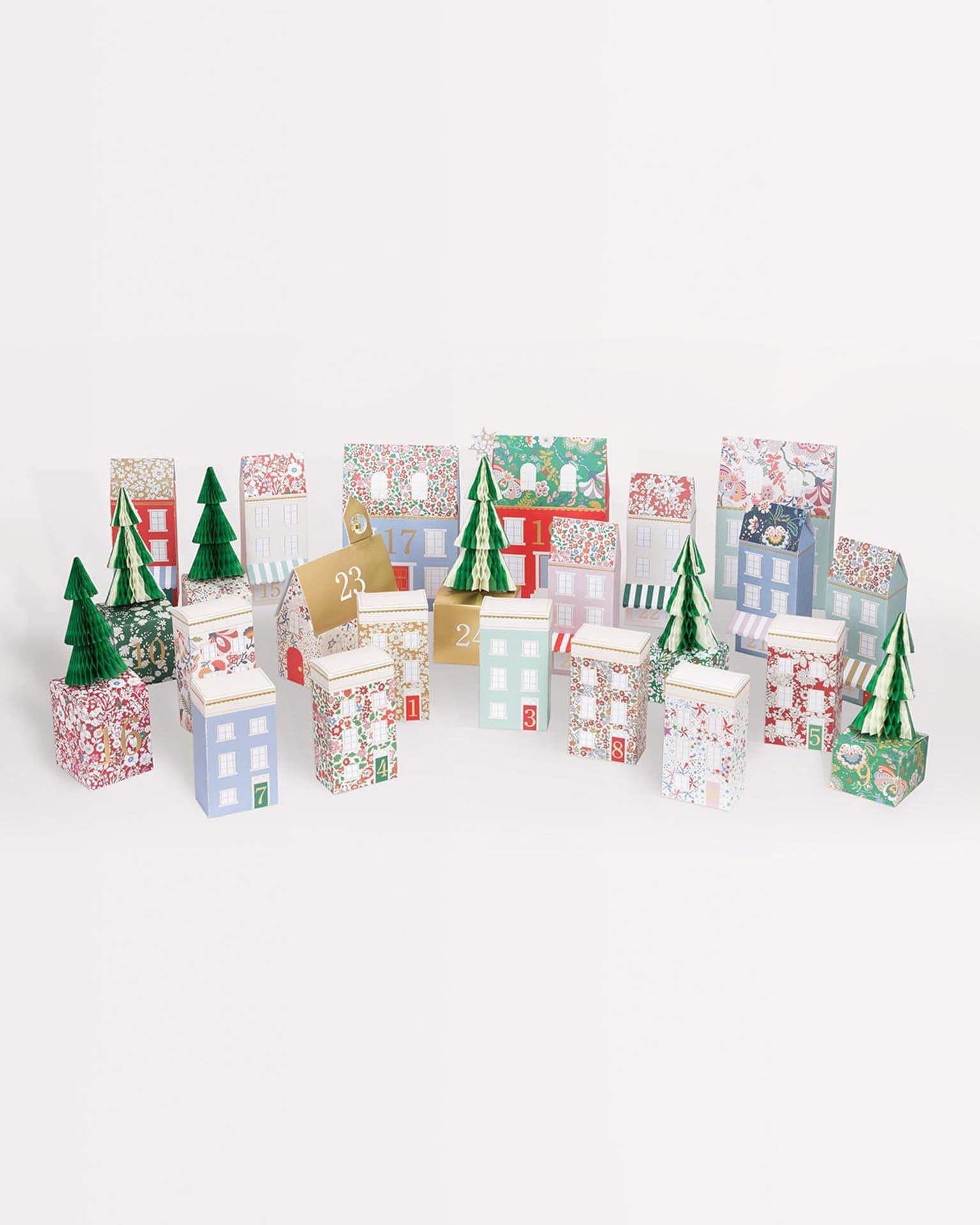 We've collaborated with Liberty to bring you the ultimate Christmas advent calendar, designed to decorate, delight, and make the countdown to Christmas extra special. This enchanting village of paper box buildings, featuring a joyful mix of Liberty floral and star prints, will create a stunning festive display. Perfect on a table or mantel, or in an unlit fireplace. Extra embellishments make it even more magical, including a little bell in the church tower, honeycomb tissue paper trees and stylish matte gold foil details. Each box is spacious enough to hold your favorite little surprises - think toys, stationery, jewelry, accessories and more. And, you can reuse them year after year, making the tradition even more meaningful for your family. Driven by discovery, Liberty has been home to the artistic shopper since 1875. Famed for its directional design and celebration of craftsmanship, its prints are created in the heart of London by the Liberty design studio.