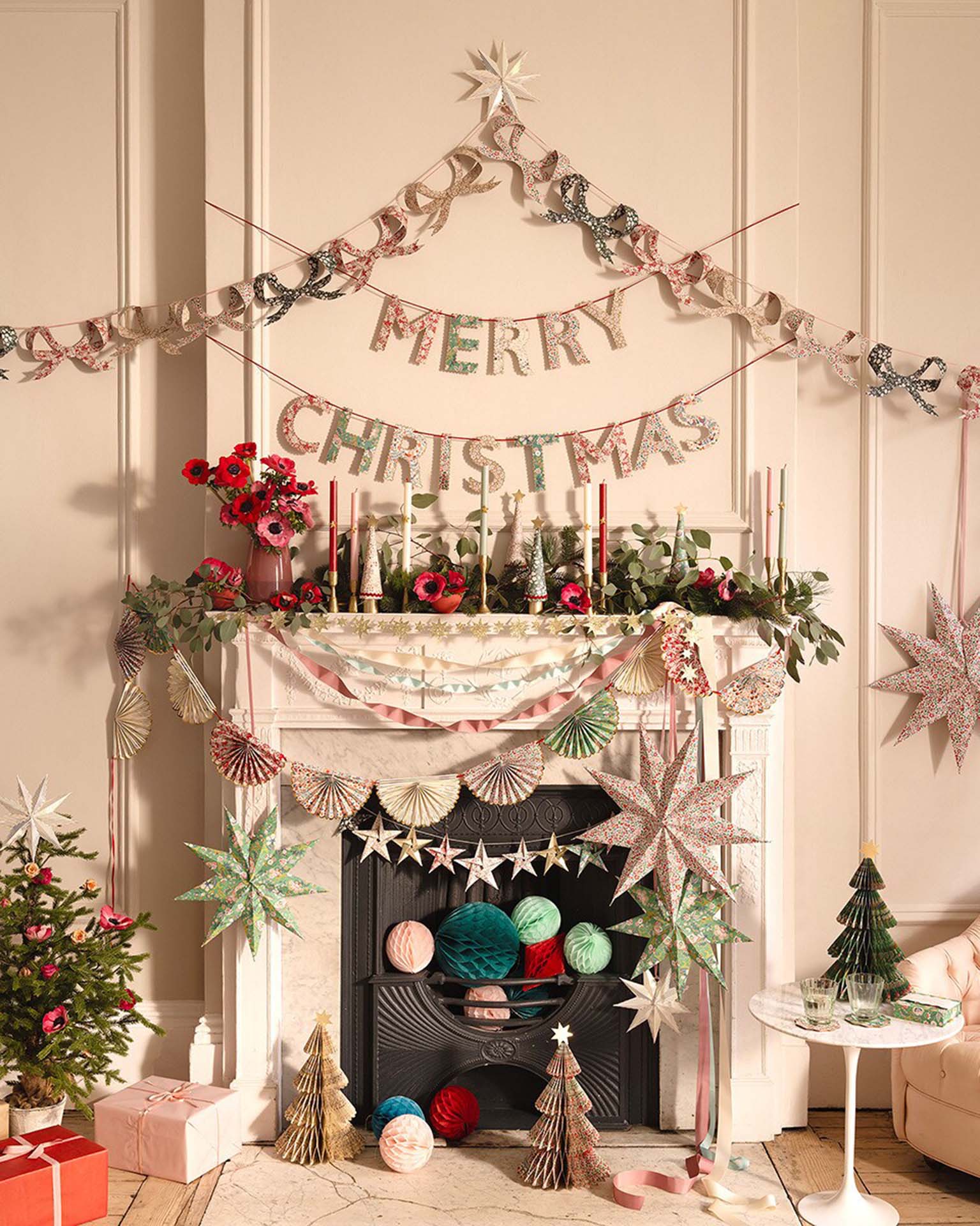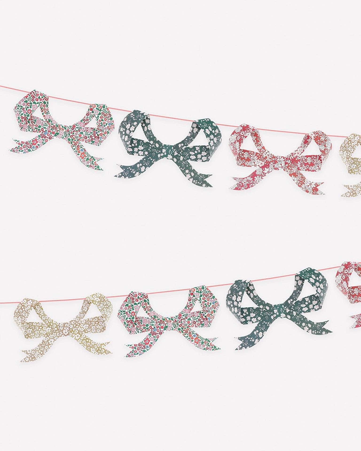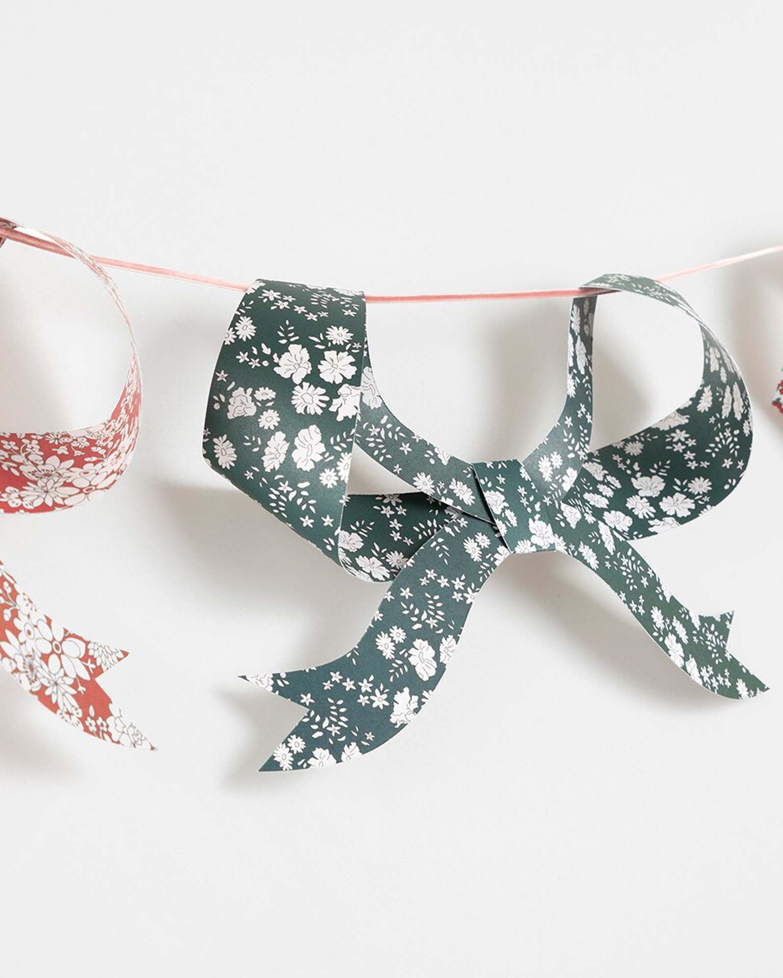 - Paper garland with 8 3D bow pennants in festive Liberty floral prints