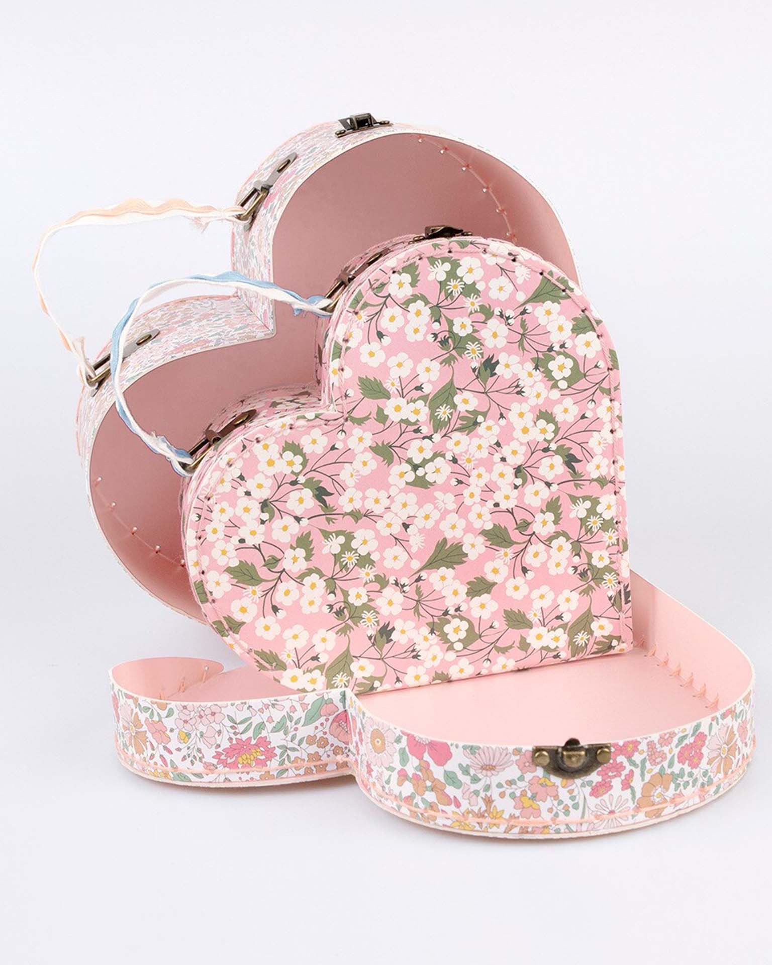 This sophisticated suitcase set, created in collaboration with Liberty, is not only a fashionable accessory, they can also double as decorative storage solutions for your home. Featuring Liberty floral print designs in pink tones, and fabric handles adorned with ricrac details, they're a must-have for kids aged 3+ and adults. Made from durable card, these heart-shaped suitcases blend practicality with elegance, making them a wonderful gift for someone special. Driven by discovery, Liberty has been home to the artistic shopper since 1875. Famed for its directional design and celebration of craftsmanship, its prints are created in the heart of London by the Liberty design studio.