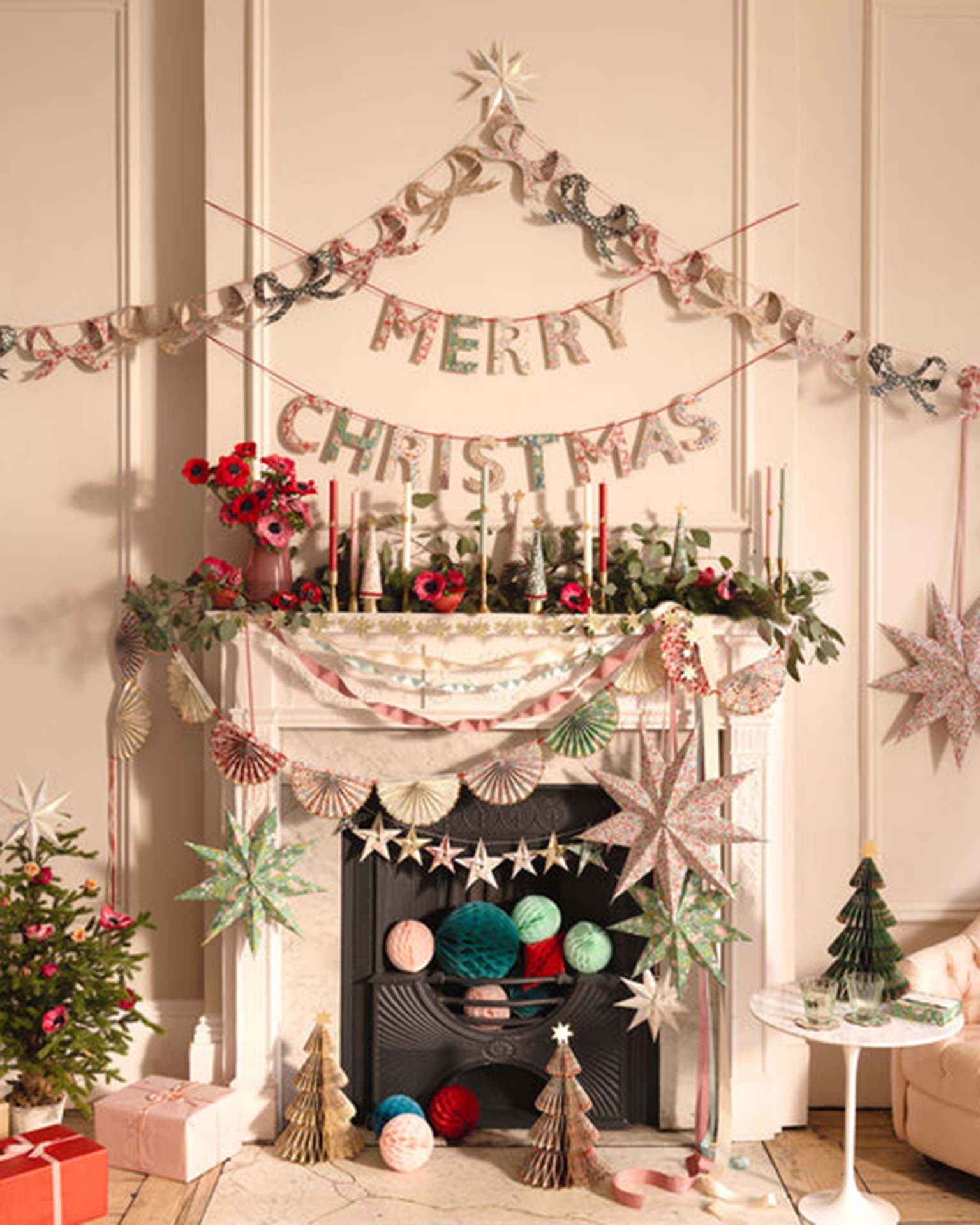- 2 Paper garlands spell out 'Merry Christmas'
