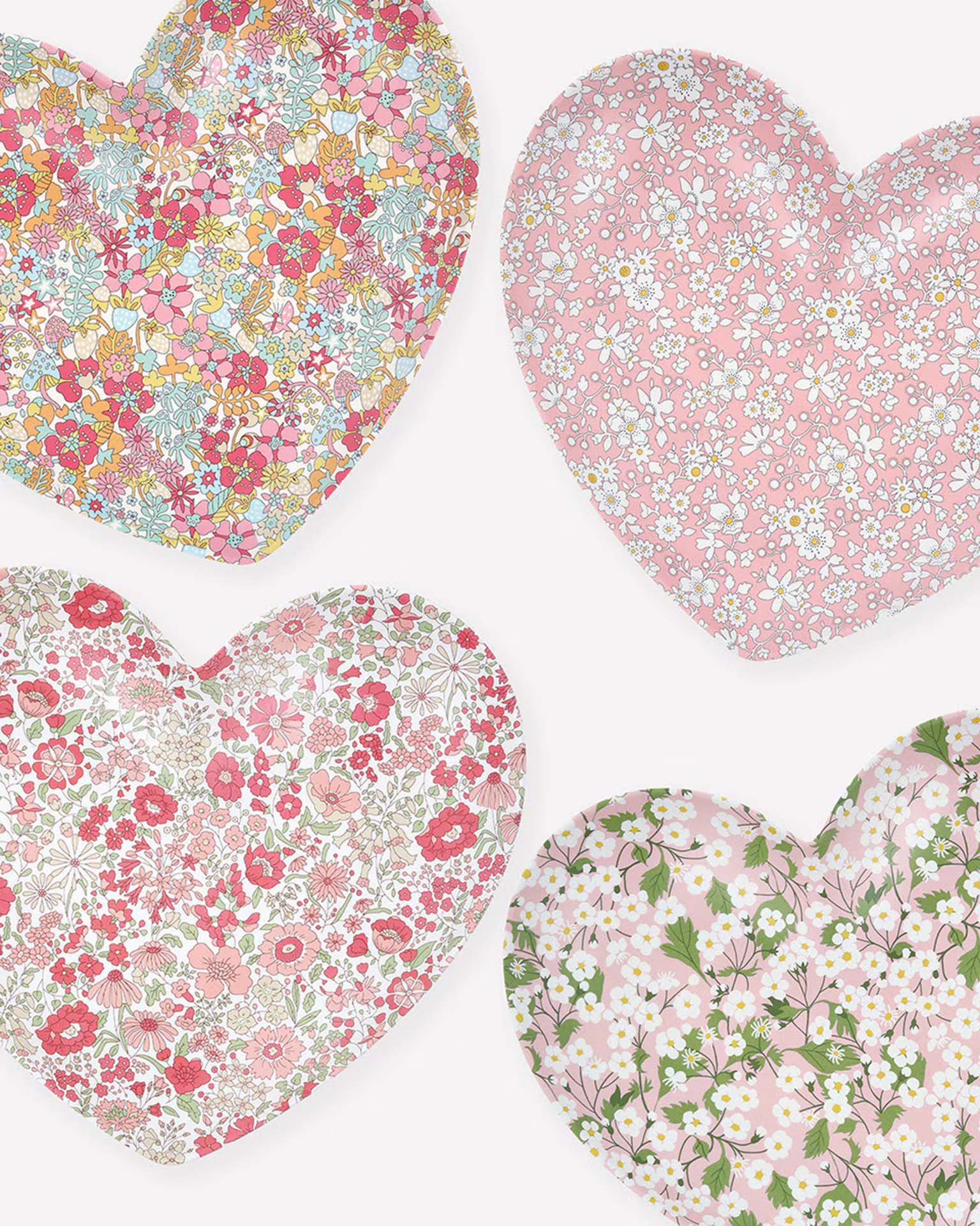 One plate set, hundreds of parties! We've teamed up with Liberty to create this sweet set of reusable heart plates, each one featuring a different Liberty floral design. The soft pinks and complementary tones of the designs bring a playful yet elegant touch to your Valentine's celebrations. Made from durable melamine, they're perfect for parties, picnics or simply brightening up everyday meals. A thoughtful choice for all ages, whether you're setting the table with love or gifting someone who will adore a heartfelt floral moment. Driven by discovery, Liberty has been home to the artistic shopper since 1875. Famed for its directional design and celebration of craftsmanship, its prints are created in the heart of London by the Liberty design studio.