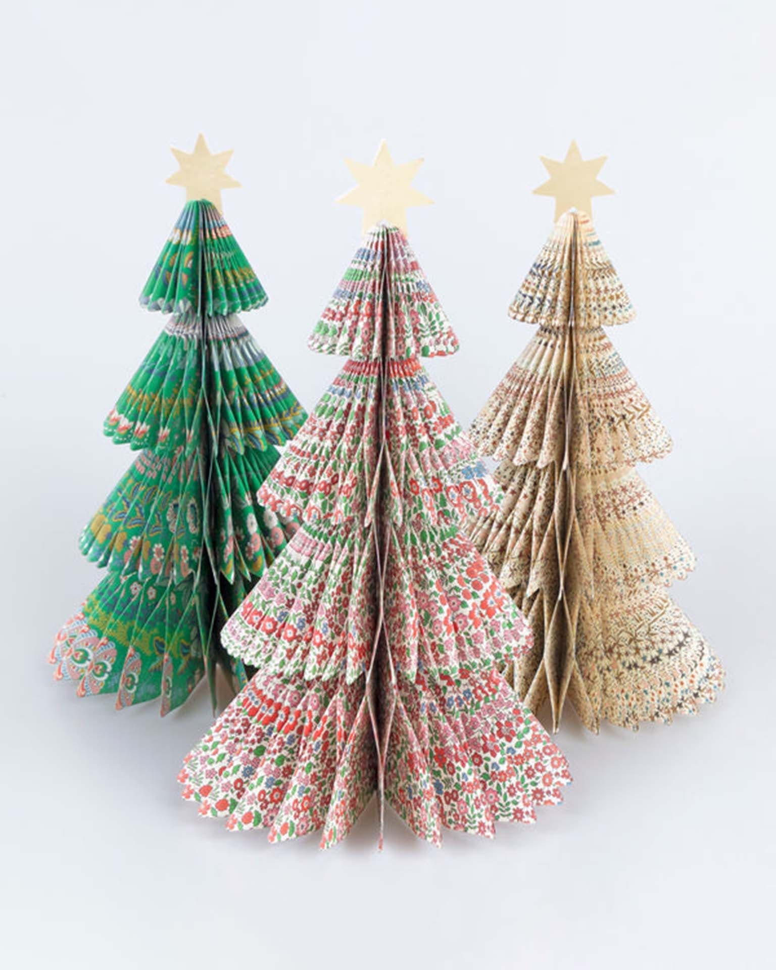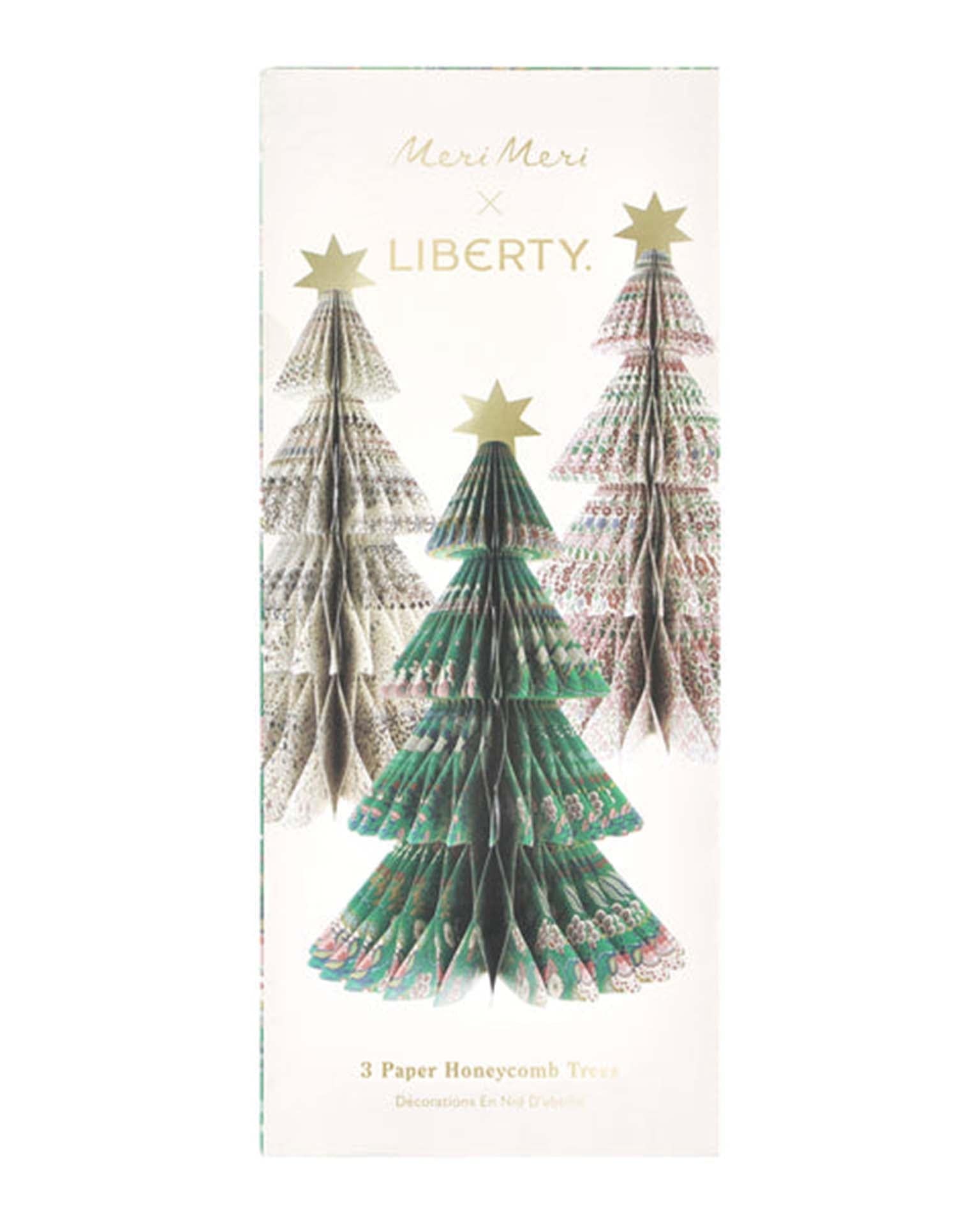 - Set of 3 honeycomb paper trees in 3 different Liberty floral and star print designs
