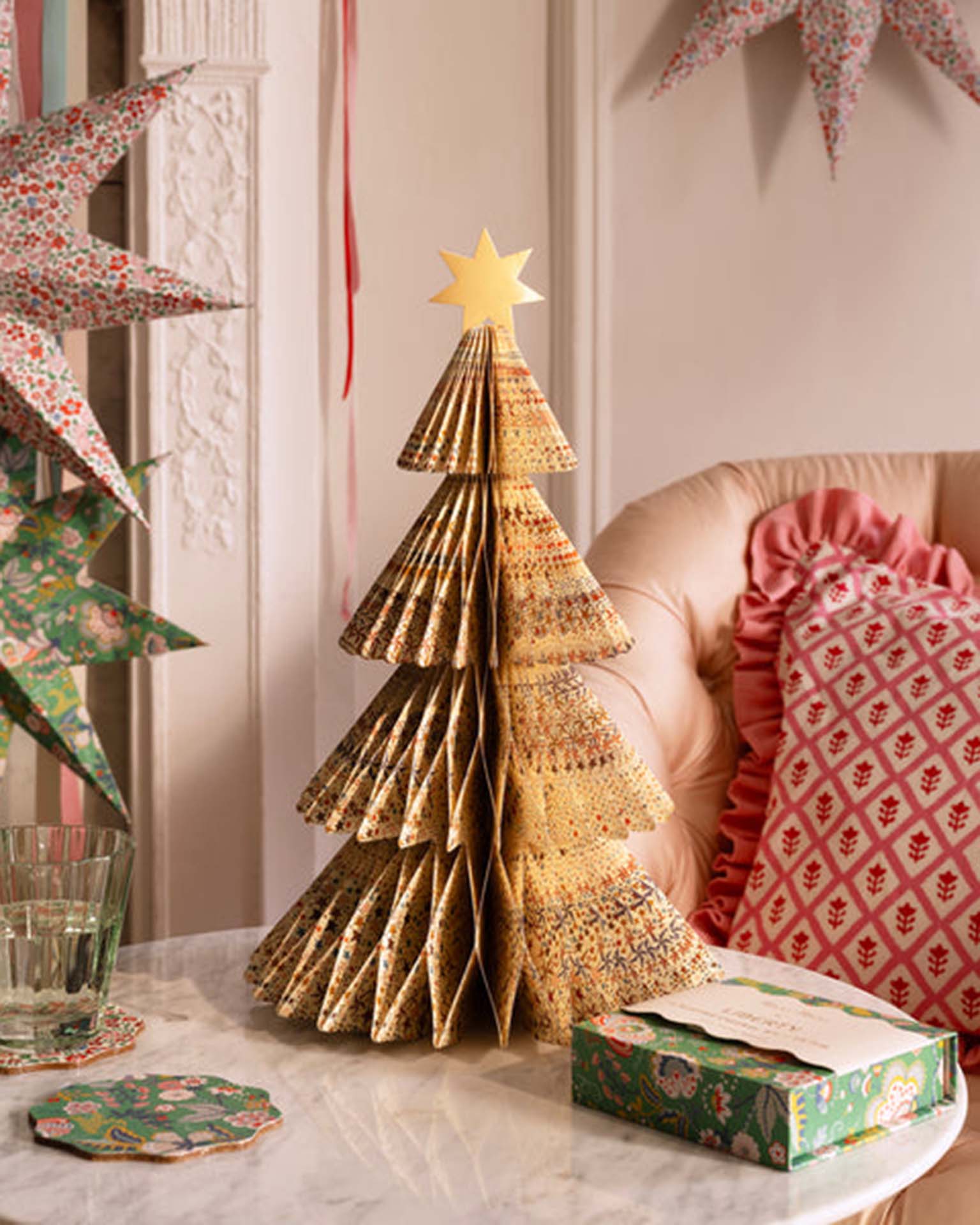 We've collaborated with Liberty to bring you elegant honeycomb paper Christmas trees, guaranteed to be a stylish focal point in your home. The floral and star Liberty print designs, in rich festive colors, are just perfect for a refined touch. Ideal for the table or mantel and, if you're short on space, they're a chic smaller alternative to a traditional tree. They're also reusable, just fold them away and bring out year after year for a timeless display. Driven by discovery, Liberty has been home to the artistic shopper since 1875. Famed for its directional design and celebration of craftsmanship, its prints are created in the heart of London by the Liberty design studio.