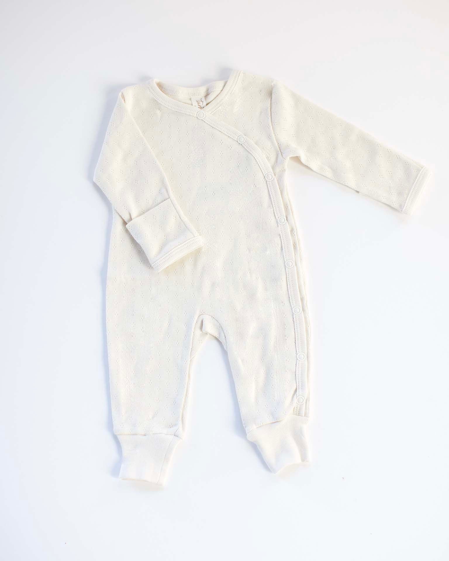 The Milan romper from Tun Tun is the perfect basic that every little one needs. Pair it with the matching pointelle bonnet or baby hat.