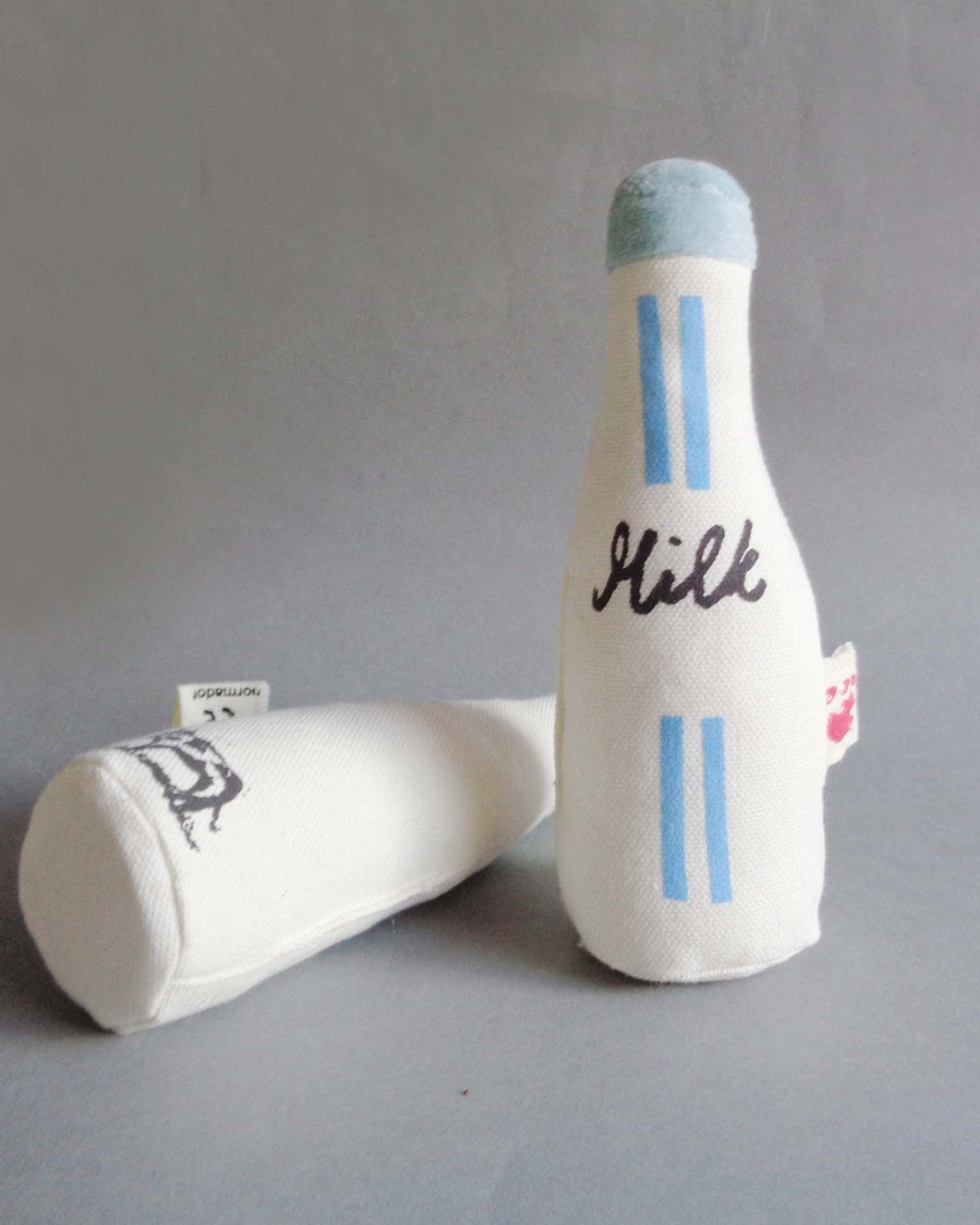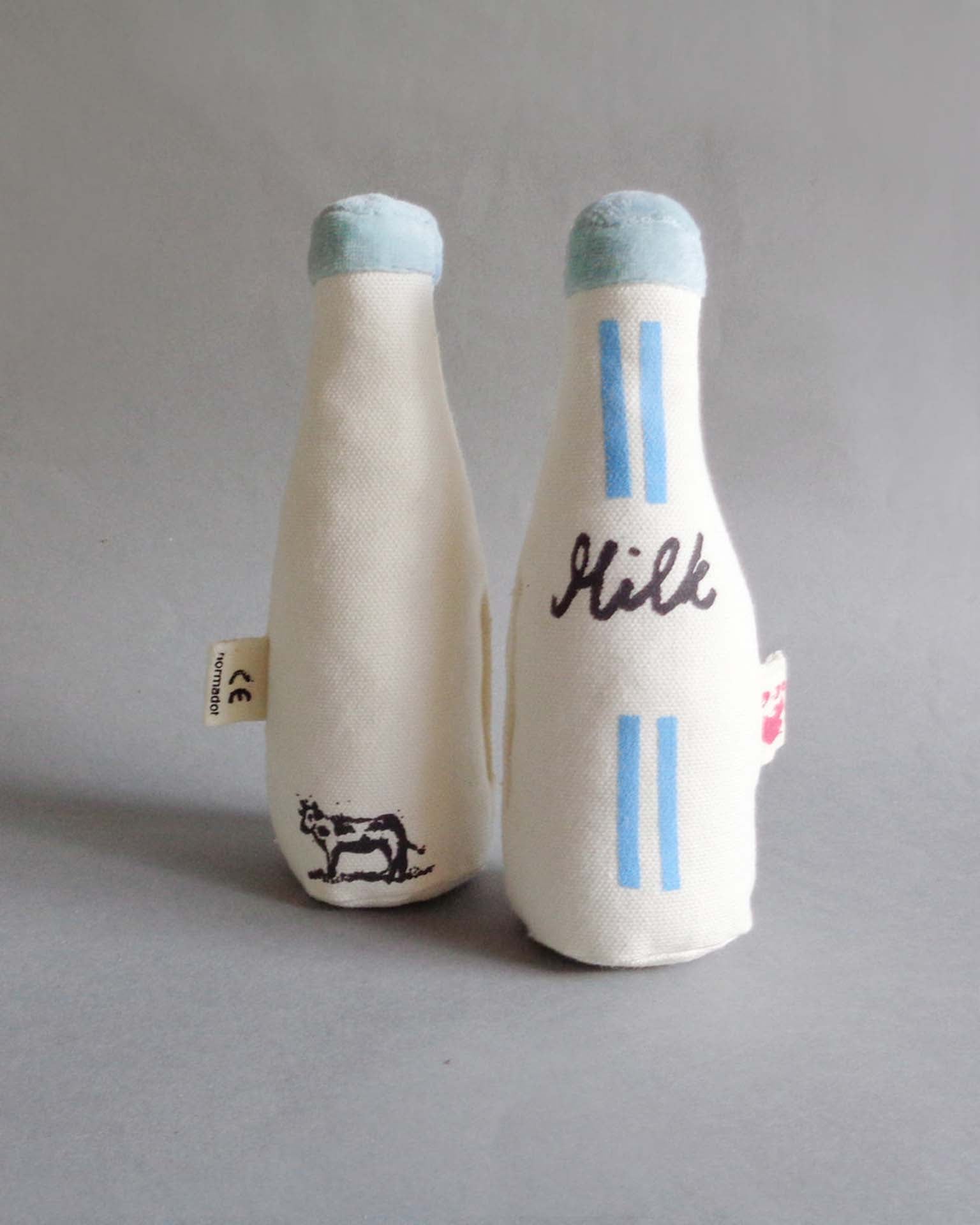 This soft milk bottle is the perfect addition to any play kitchen! Made of soft cotton and featuring a timeless design.