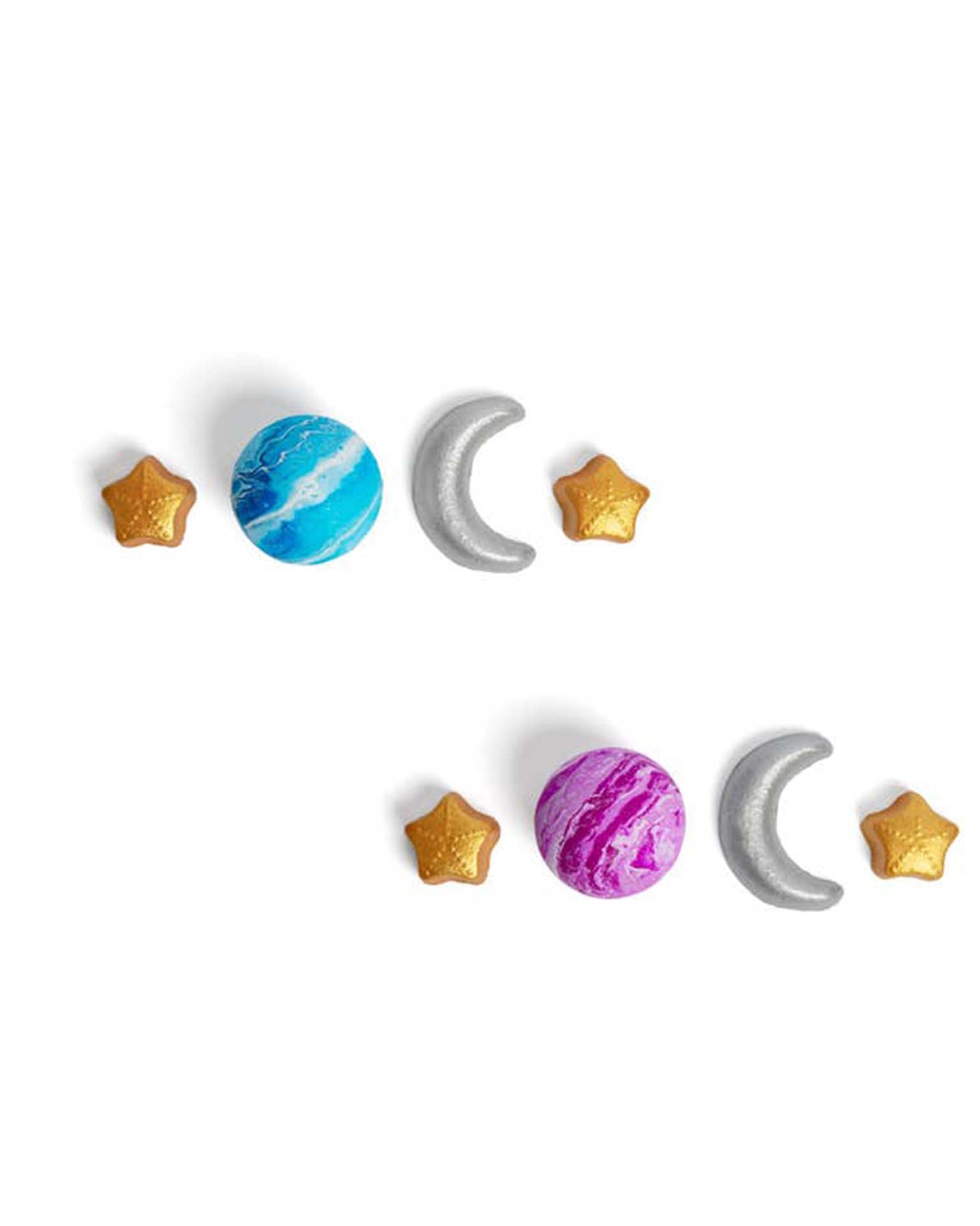 - Includes: 1 Hand painted planet, 1 silver crescent moon, 2 gold stars