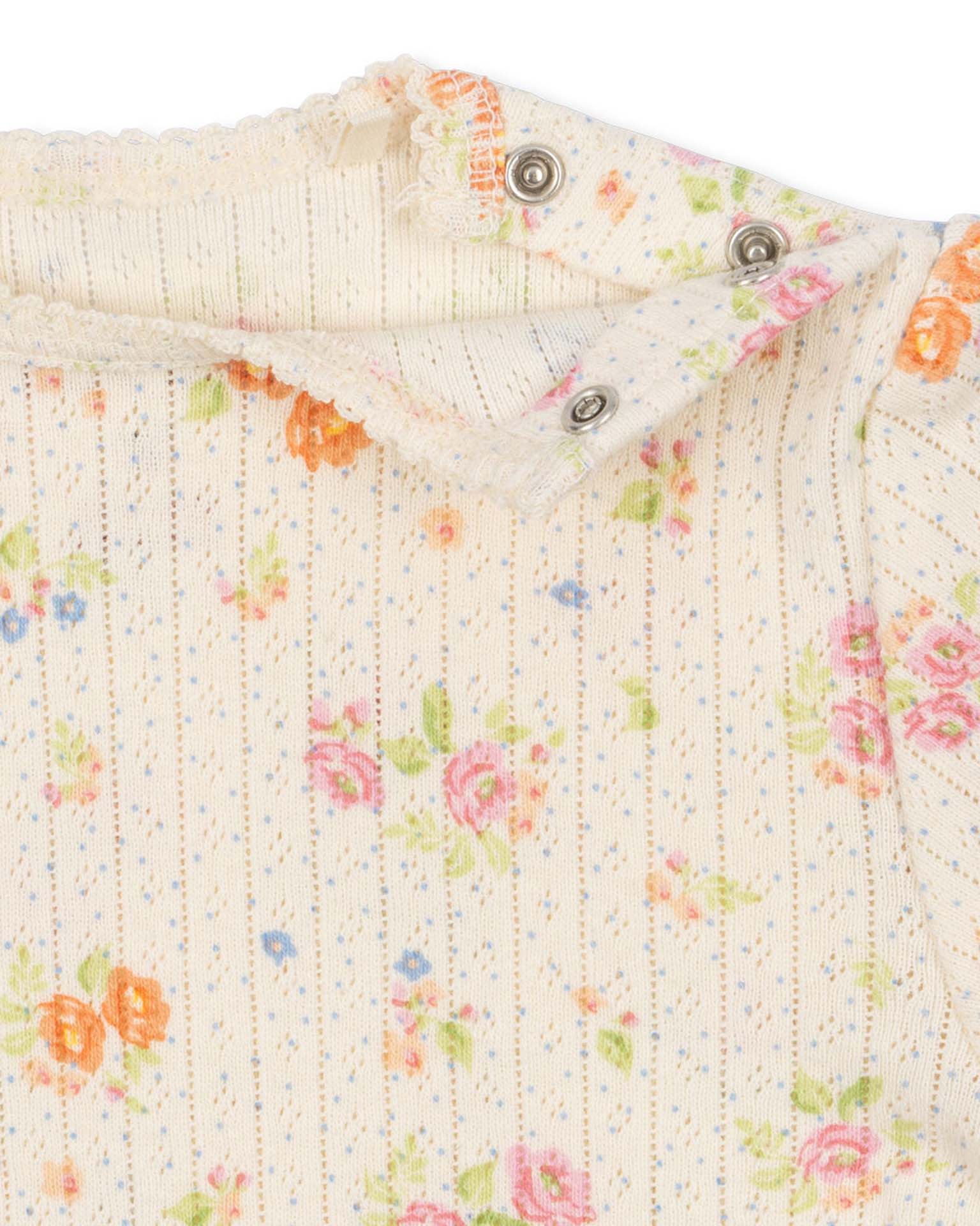 Soft organic cotton body with decorative pointelle. Designed with snap buttons at leg opening for easy dressing. Minnie is our line of classic basic essentials crafted from soft organic cotton. These essentials are made to be worn both day and night as a comfortable layer close to the skin.