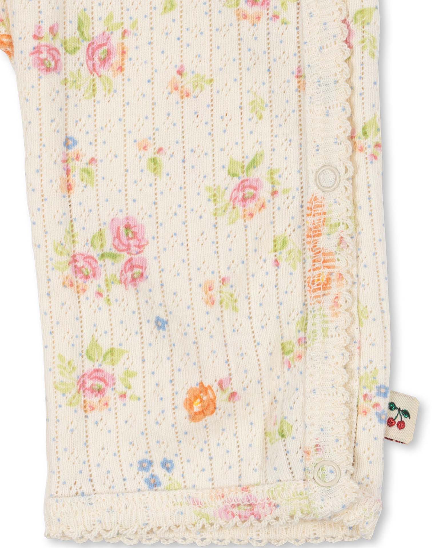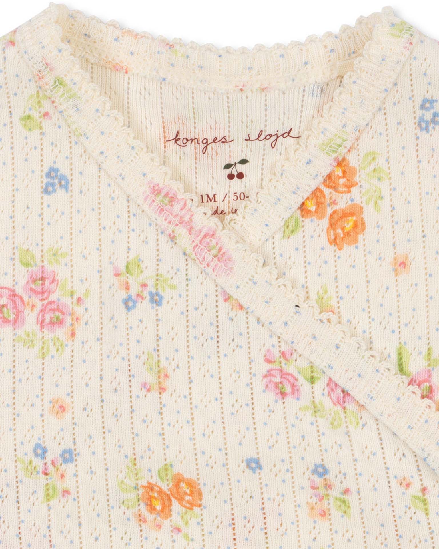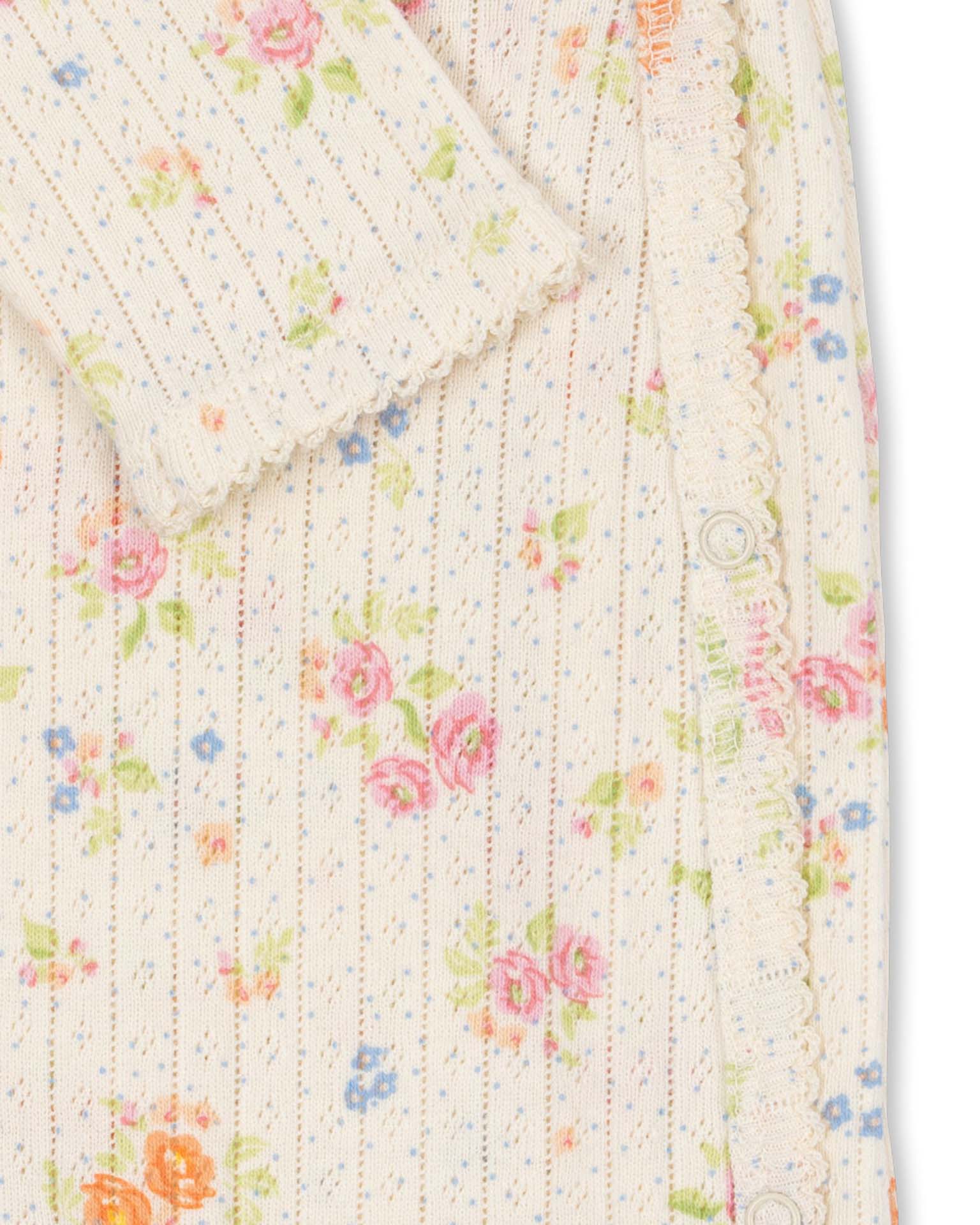 Soft Minnie onesie for newborns with a convenient wrap closure and snap buttons along the legs and body for easy changing. Designed with delicate eyelet hems and an all-over pointelle pattern. Minnie is our classic line of basic essentials crafted from soft organic cotton. These essentials are made to be worn both day and night as a comfortable layer close to the skin.