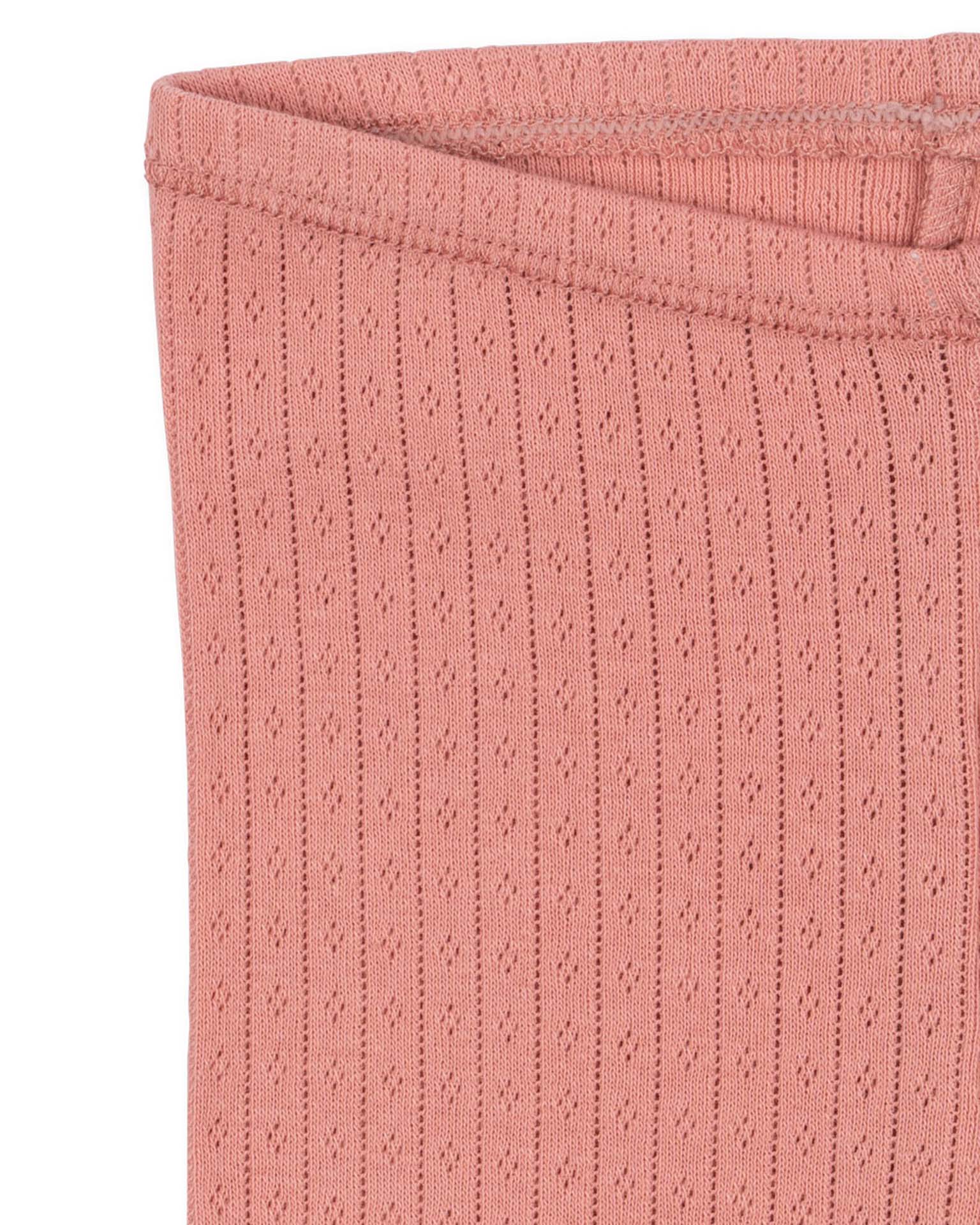 Soft and stretchy pants designed with a decorative all-over pointelle pattern and a comfy elastic waistline. Minnie is our classic line of basic essentials crafted from soft organic cotton. These essentials are made to be worn both day and night as a comfortable layer close to the skin.