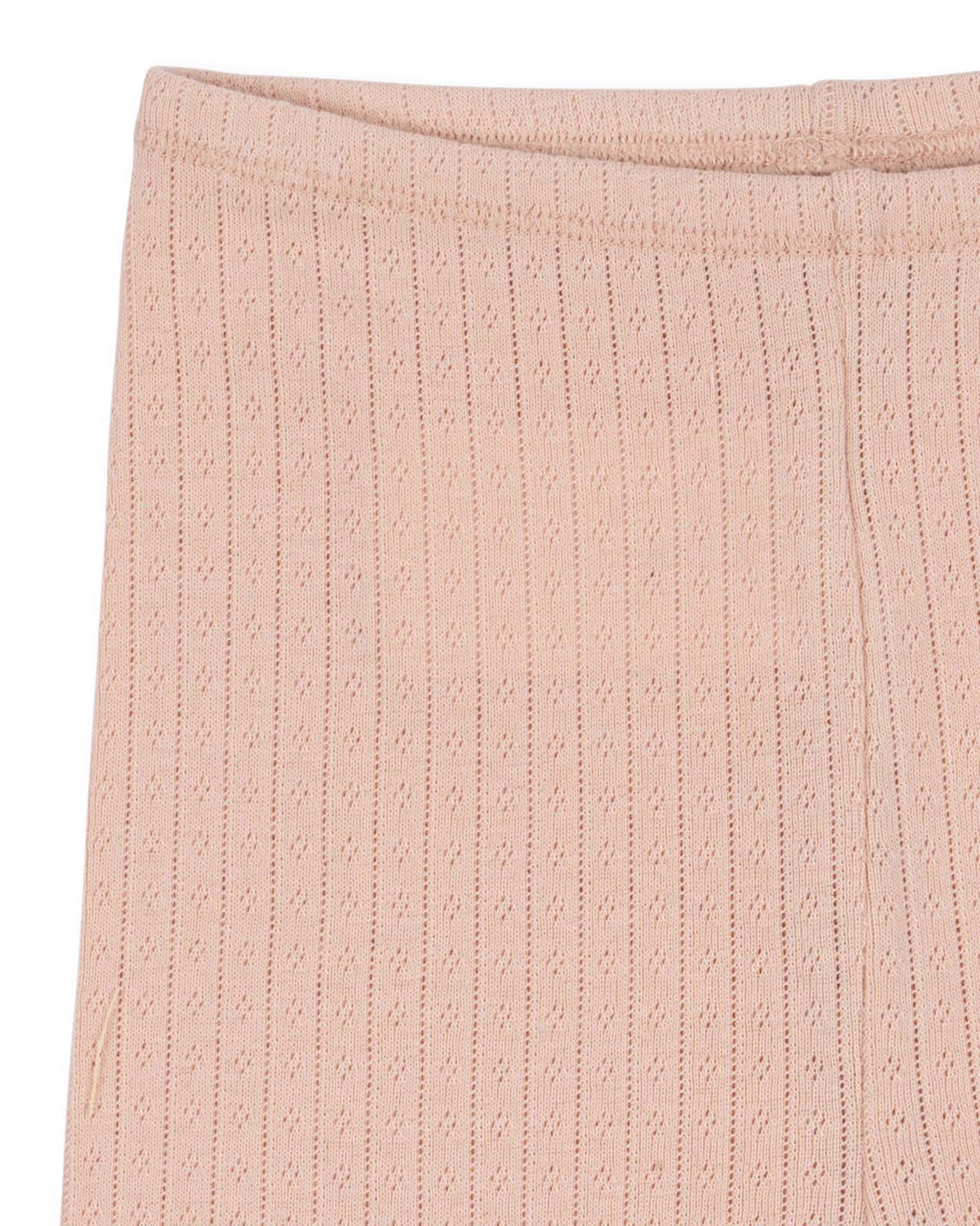 These knee-length leggings with a decorative all-over pointelle pattern and a comfy elastic waist are a must-have basic piece. Pair them with the matching minnie tee from Konges Sløjd.