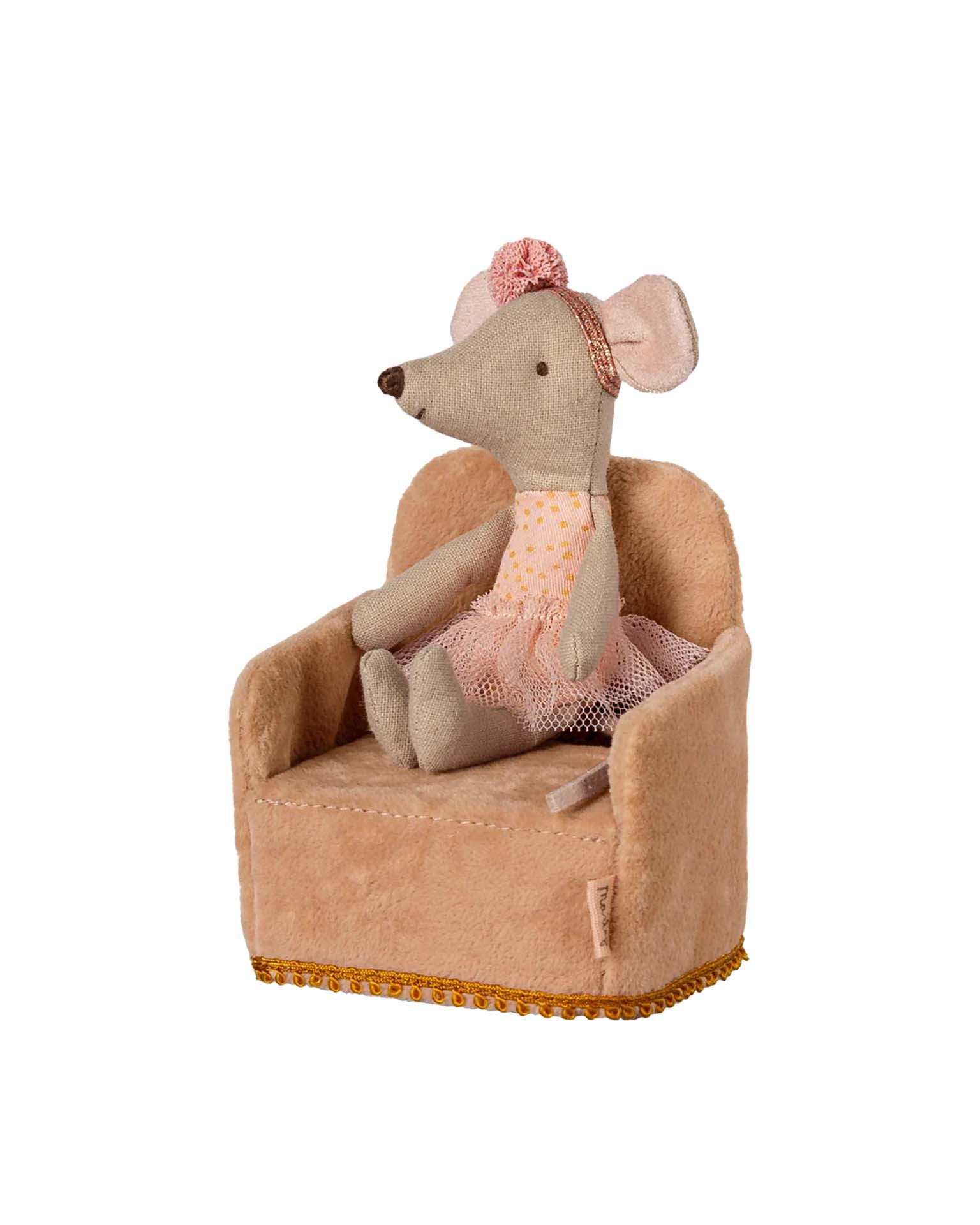 A perfect place for your small Maileg friends to take a rest. It fits nicely into the Mouse hole Farmhouse. The chair is delivered flat packed and is easy to fold and assembly.