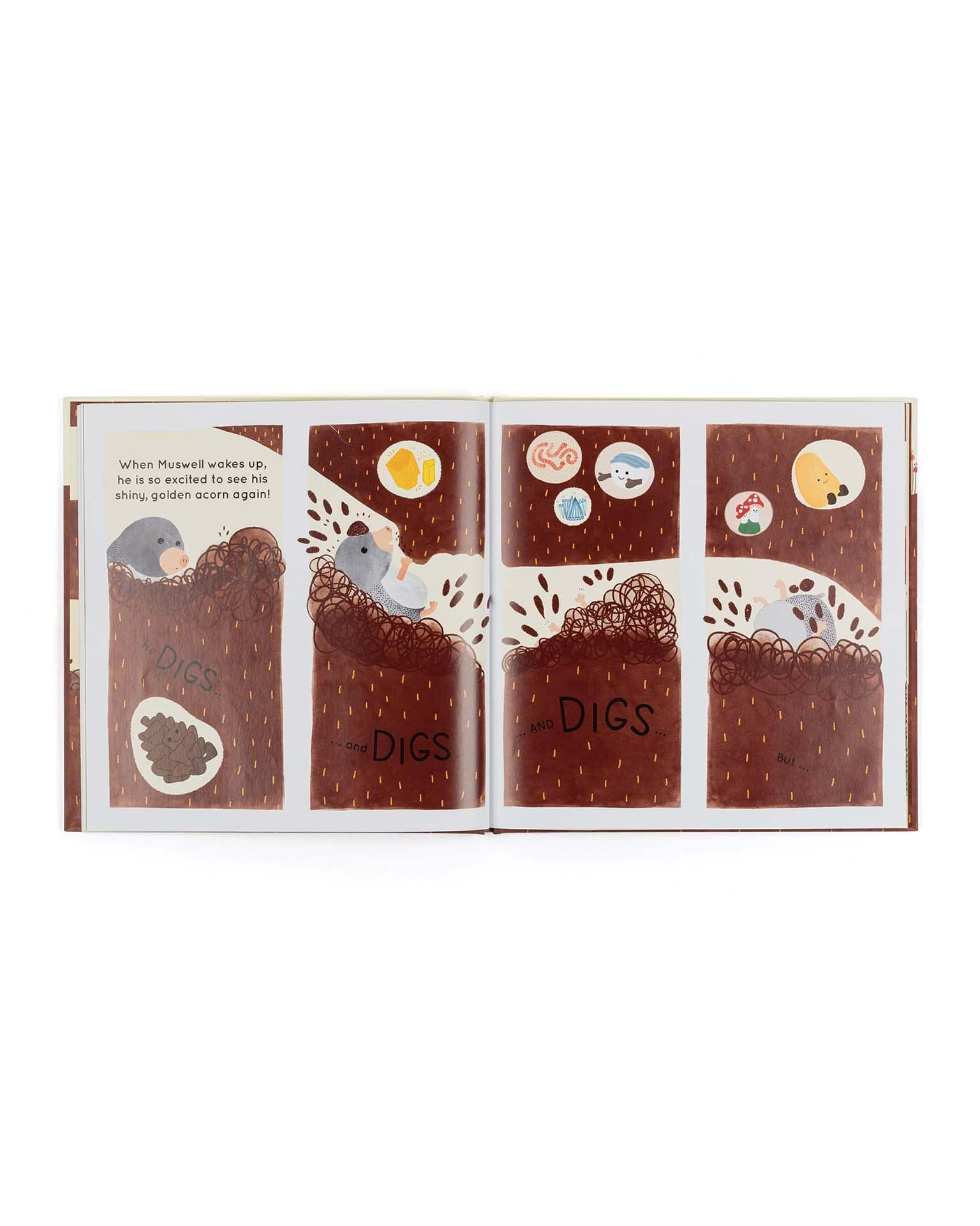 Moles love to DIG and DIG and DIG for treasure! And when they find treasure, they ALWAYS share it. One day, Muswell Mole finds the most beautiful piece of treasure he’s ever seen… a shiny, golden acorn. It’s so beautiful, he decides to keep it all for himself. Will Muswell put things right and learn to share? A quirky story about honesty and kindness, with a large lift-the-flap finale.