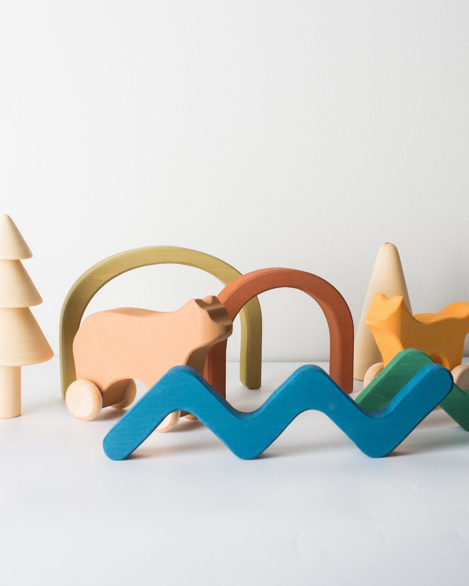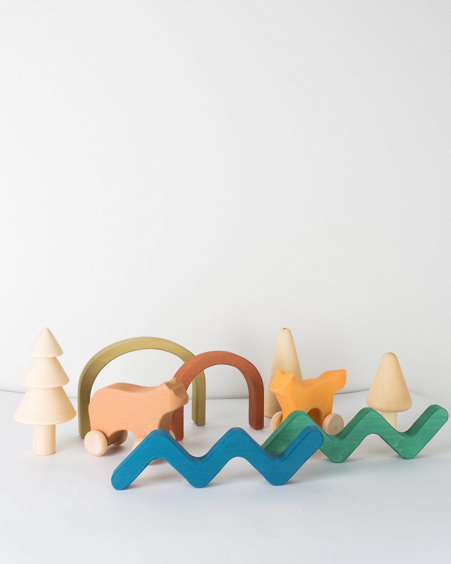 Create your own magical forest with the Natural Forest Set. They will love stacking and playing make-believe with these handmade trees and shrubs. Add the Rolling Fox and Rolling Bear for an extra special woodland touch.