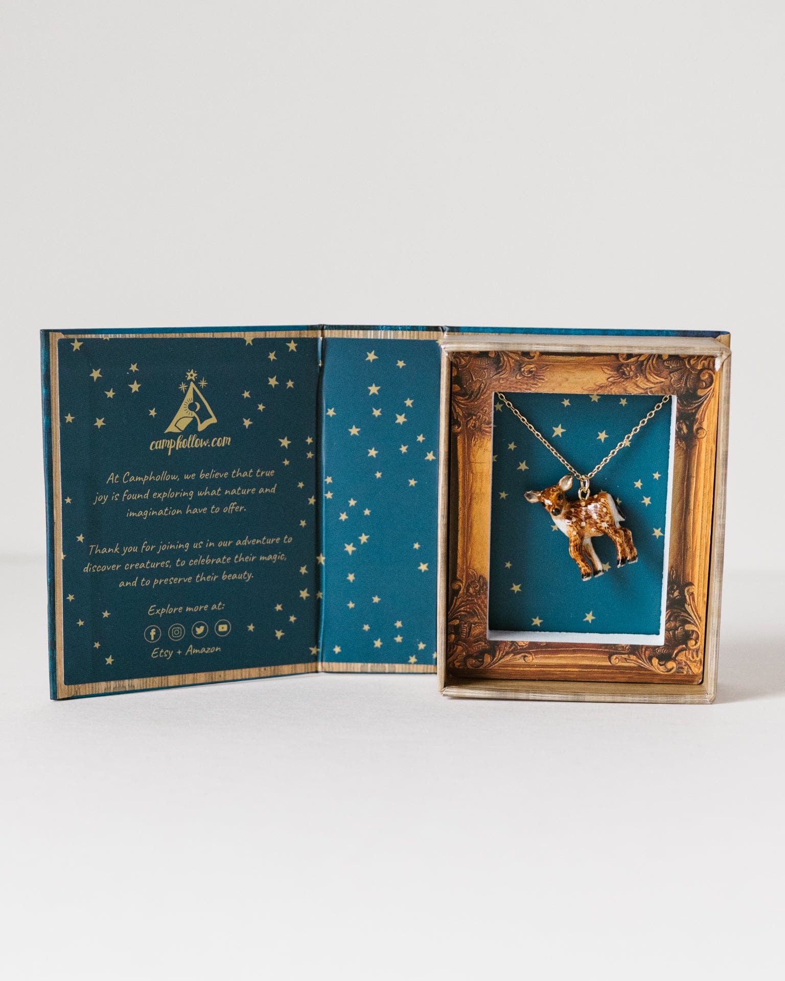 Introduce a little whimsy to your child's jewelry box with this Camp Hollow handmade heirloom-quality necklace. Featuring a hand-painted ceramic fawn as its centerpiece, this precious piece of children's jewelry is sure to bring a smile to any little one's face.