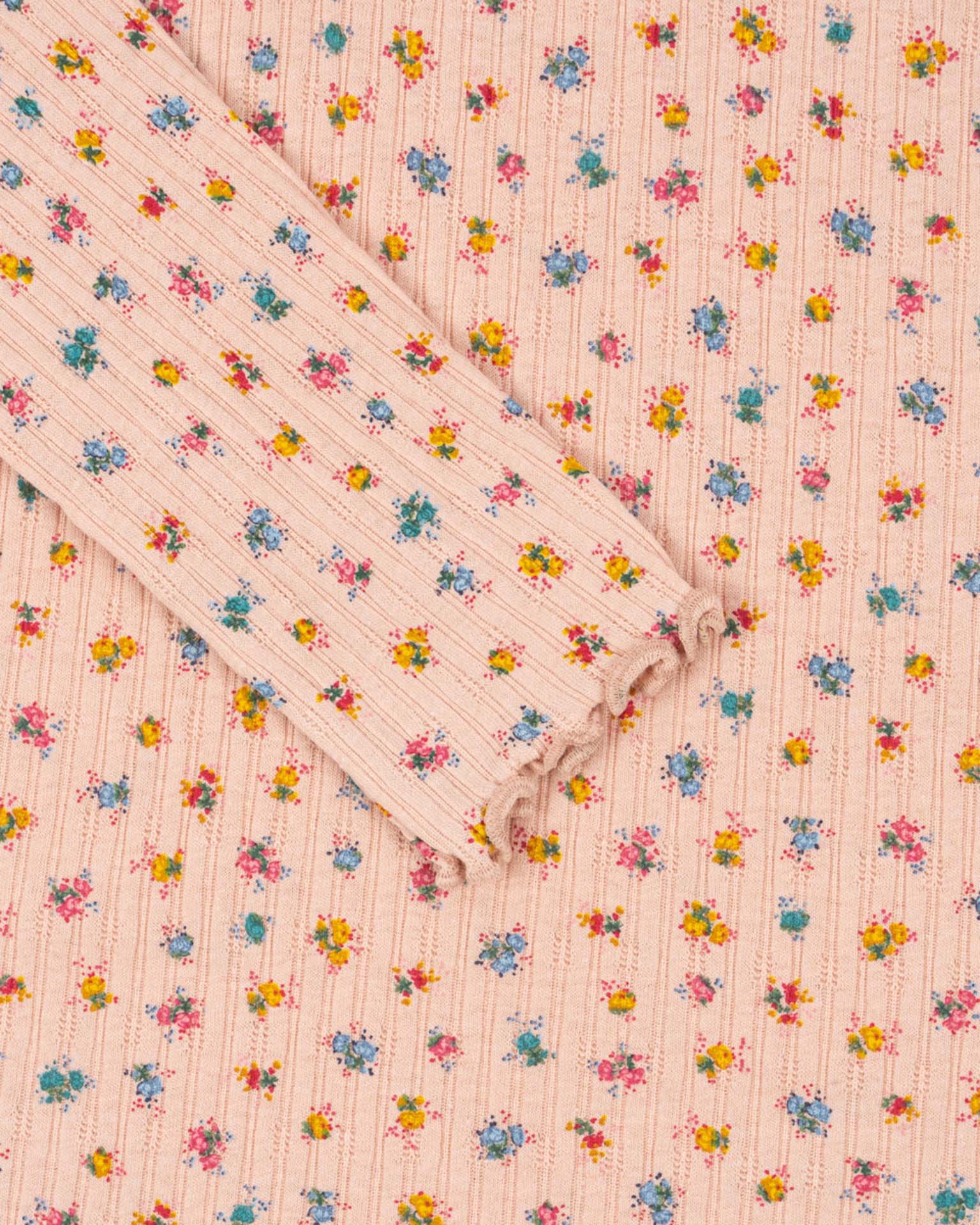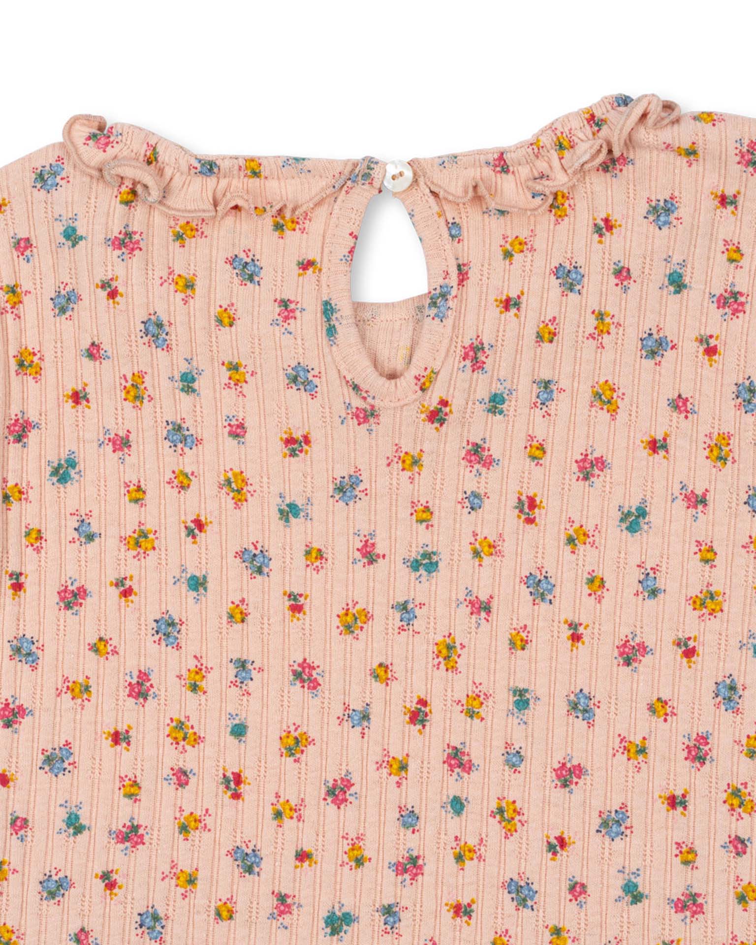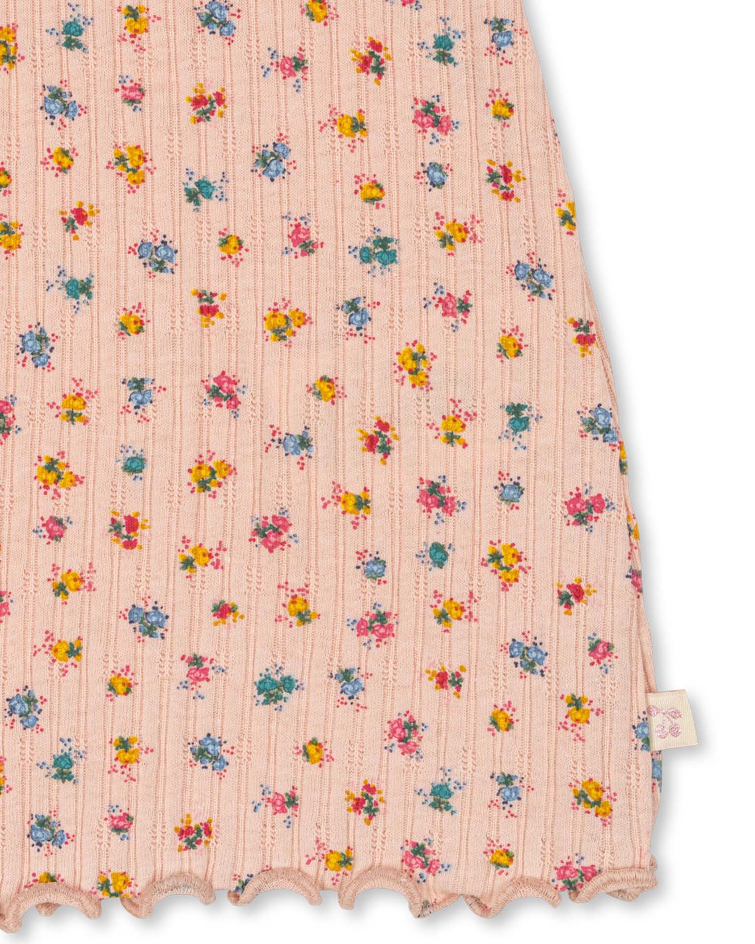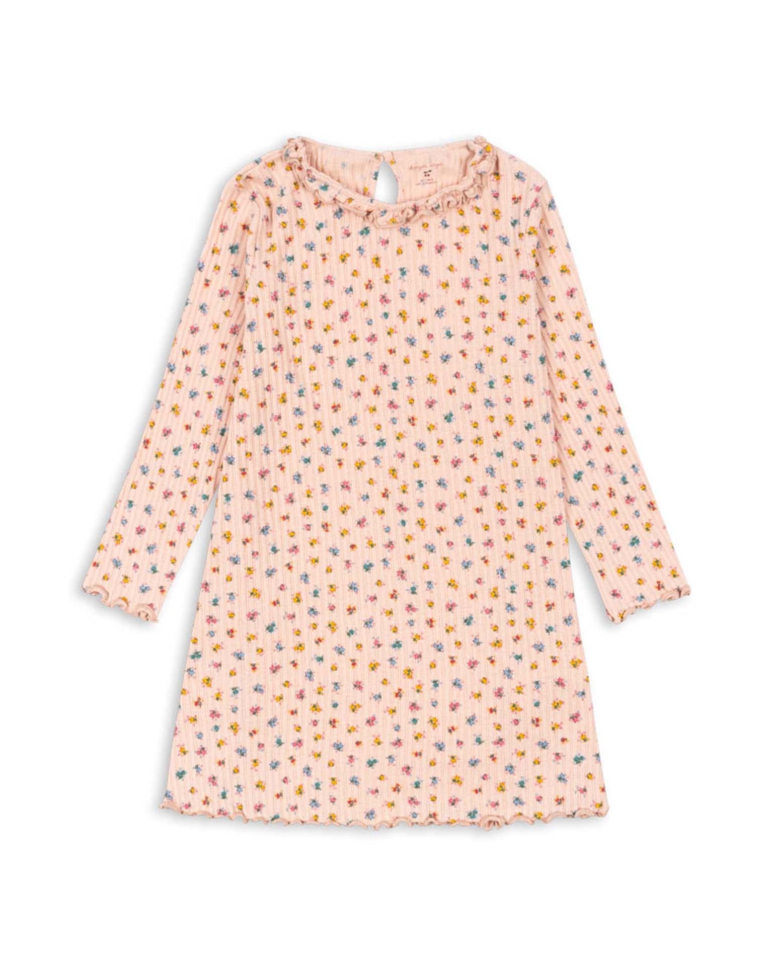 This soft rib dress in a stretchy fabric from Konges Sløjd closes with a single mother of pearl button at the neck.