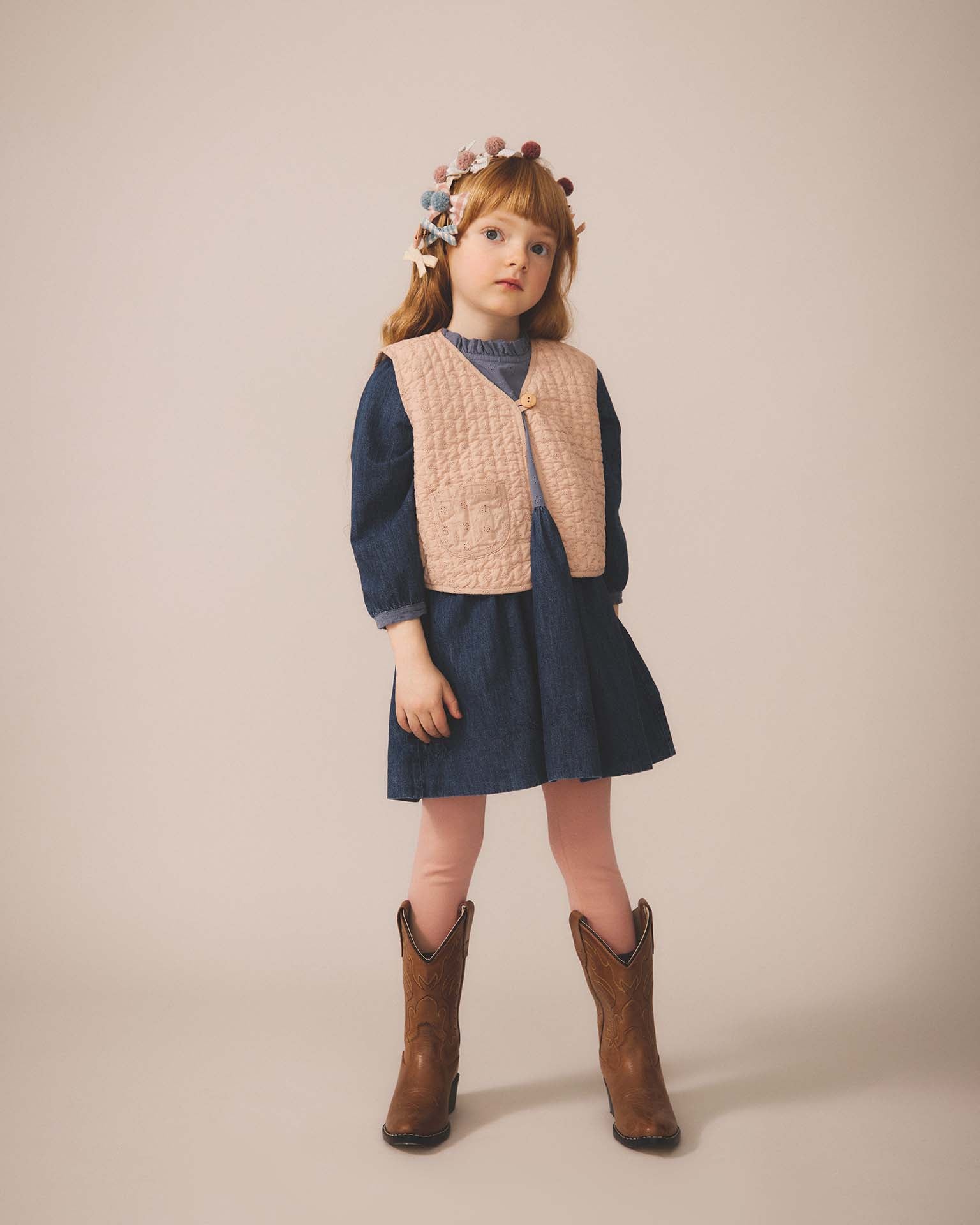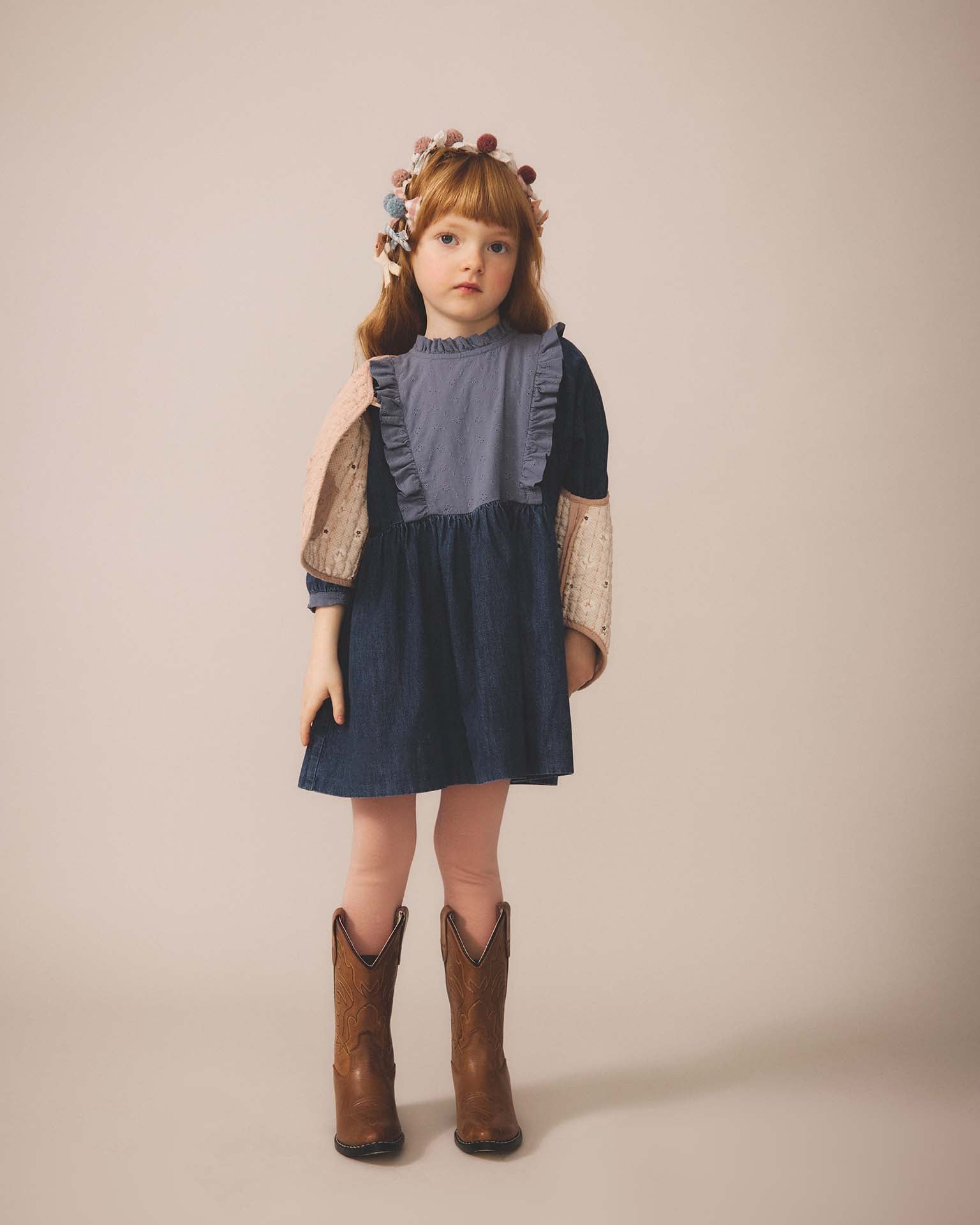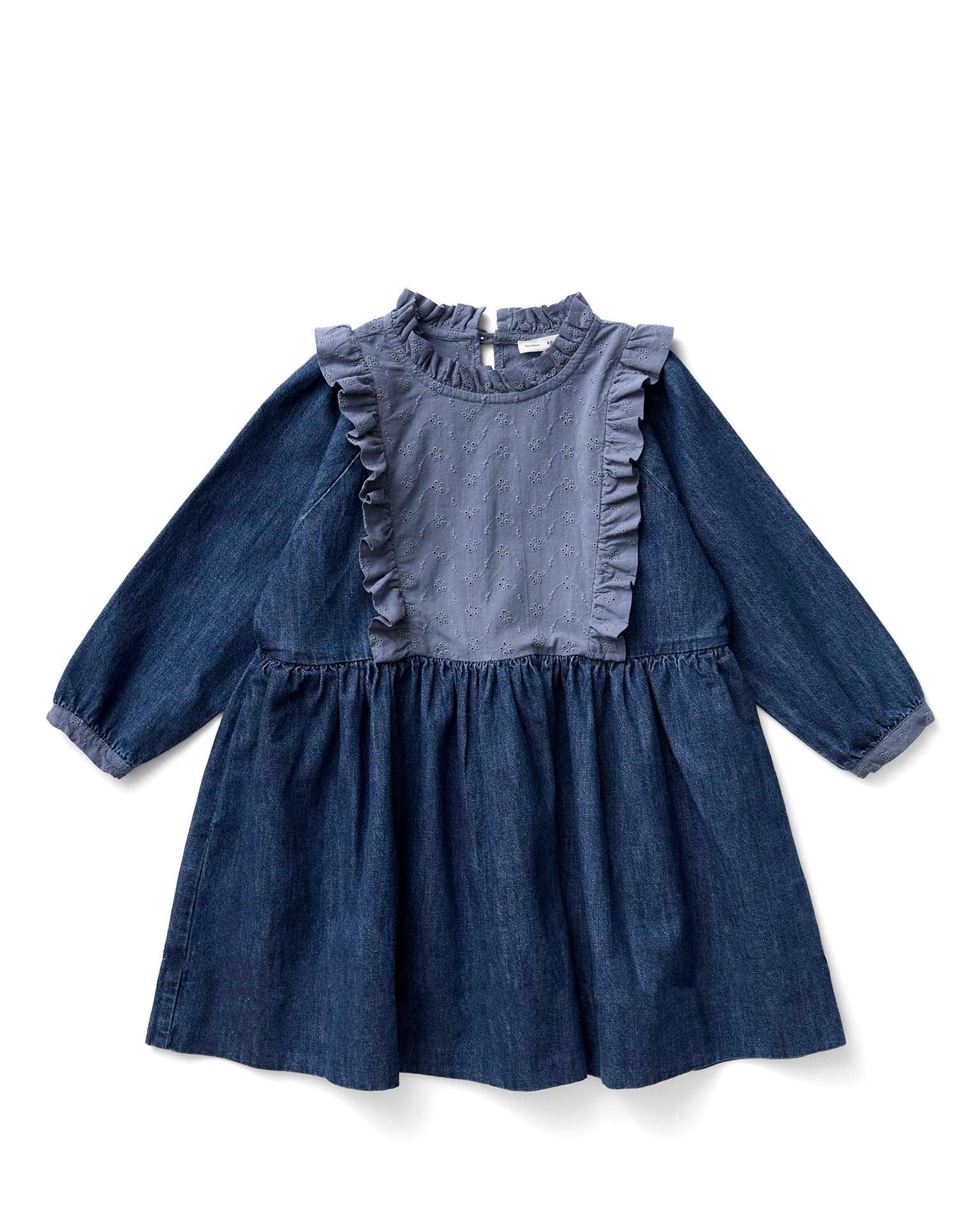 Your kiddo will fall in love with the Percy Dress from Soor Ploom this season. Featuring a baby doll style with a ruffle details at the neck + an eyelet yoke, this feminine piece has a generous silhouette and falls mid-length.