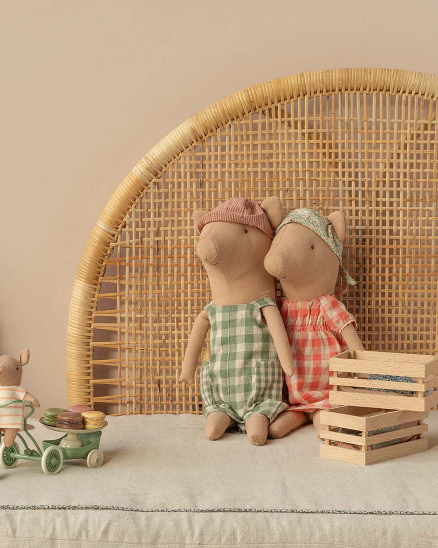 Oink Oink - say hello to the sweetest pig. This pig comes in a beautiful dress and scarf and can sit on its own. Create your own pig family by adding more family members from the collection.