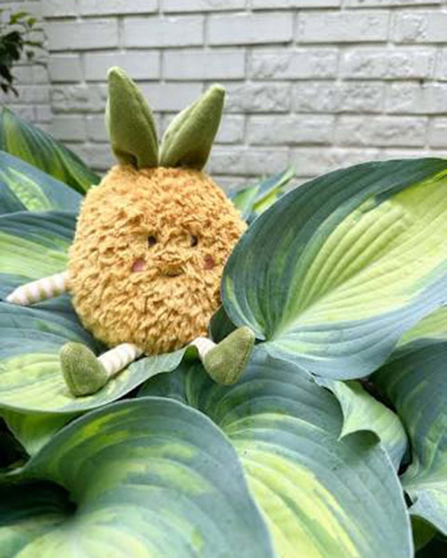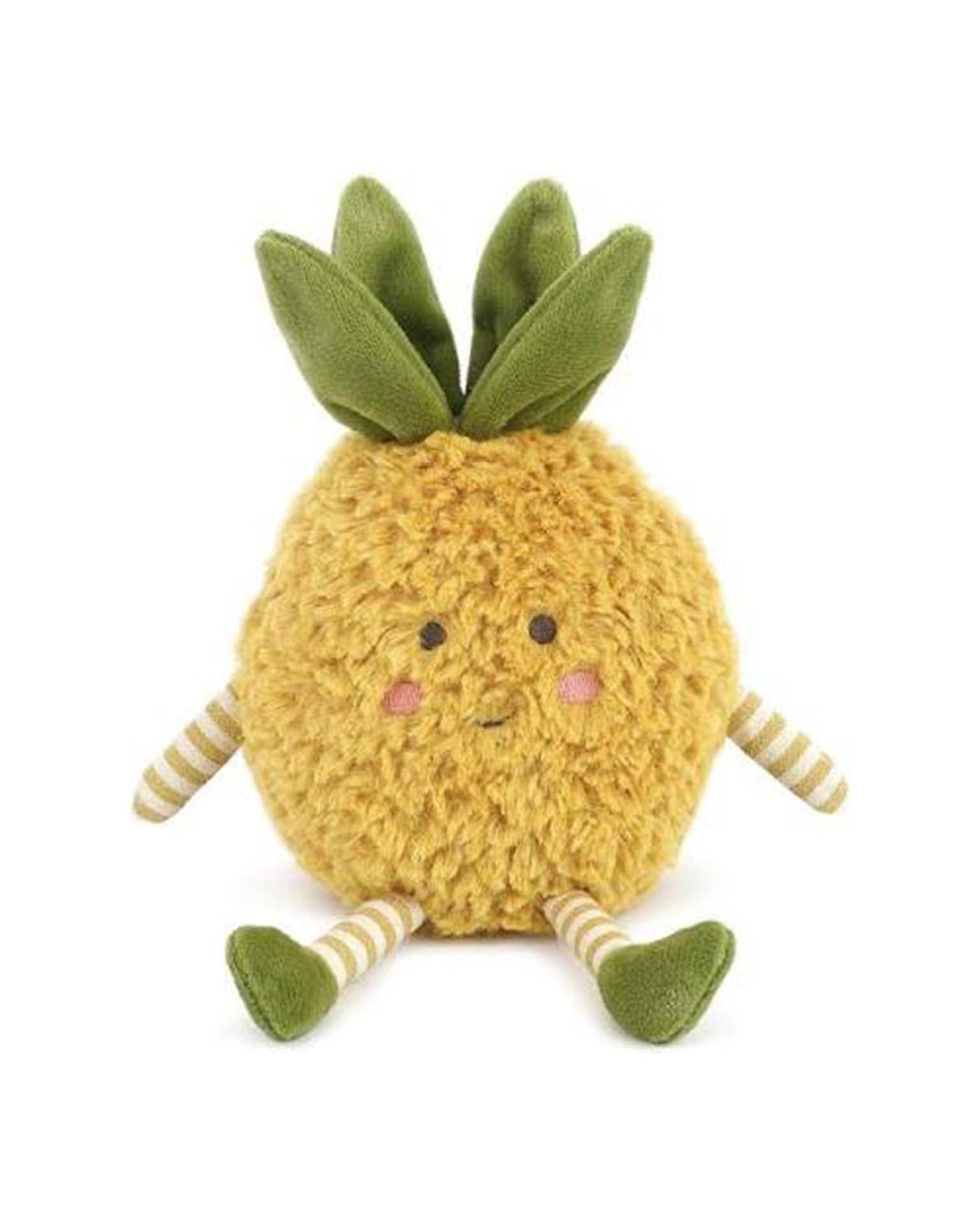 Meet Pina Pineapple Plush, a tropical treasure from our fruit-themed collection! With its sunny yellow textured fur, whimsical striped arms and legs, and plush green crown, Pina Pineapple invites your child to explore the enchanting world of produce. This delightful plush sparks their imagination and fills their days with smiles and joy. Whether perched on a shelf, accompanying them on imaginative adventures, or providing cozy snuggles, this plush pineapple is the perfect quirky gift for all ages!
