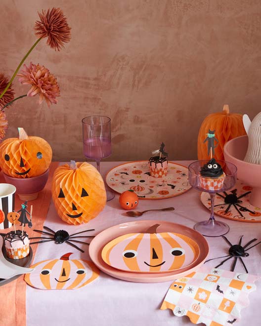 Who says Halloween has to be super scary? Make your Halloween party a happy one with our charming smiling pumpkin plates. These adorable striped plates are perfect for all ages.