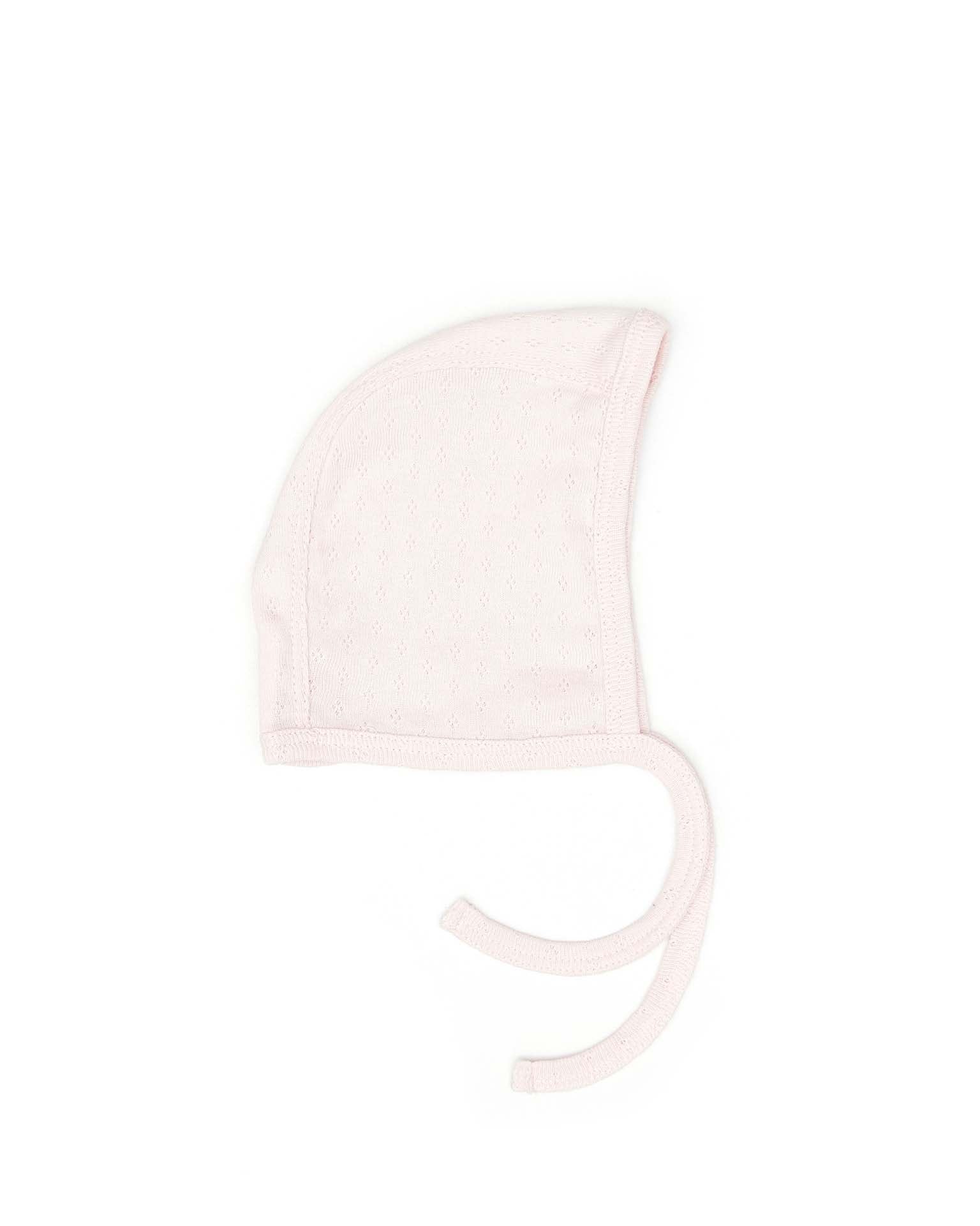 The pointelle bonnet from Tun Tun is a staple for your new little one. Pair it with the matching blanket and romper for a complete set.