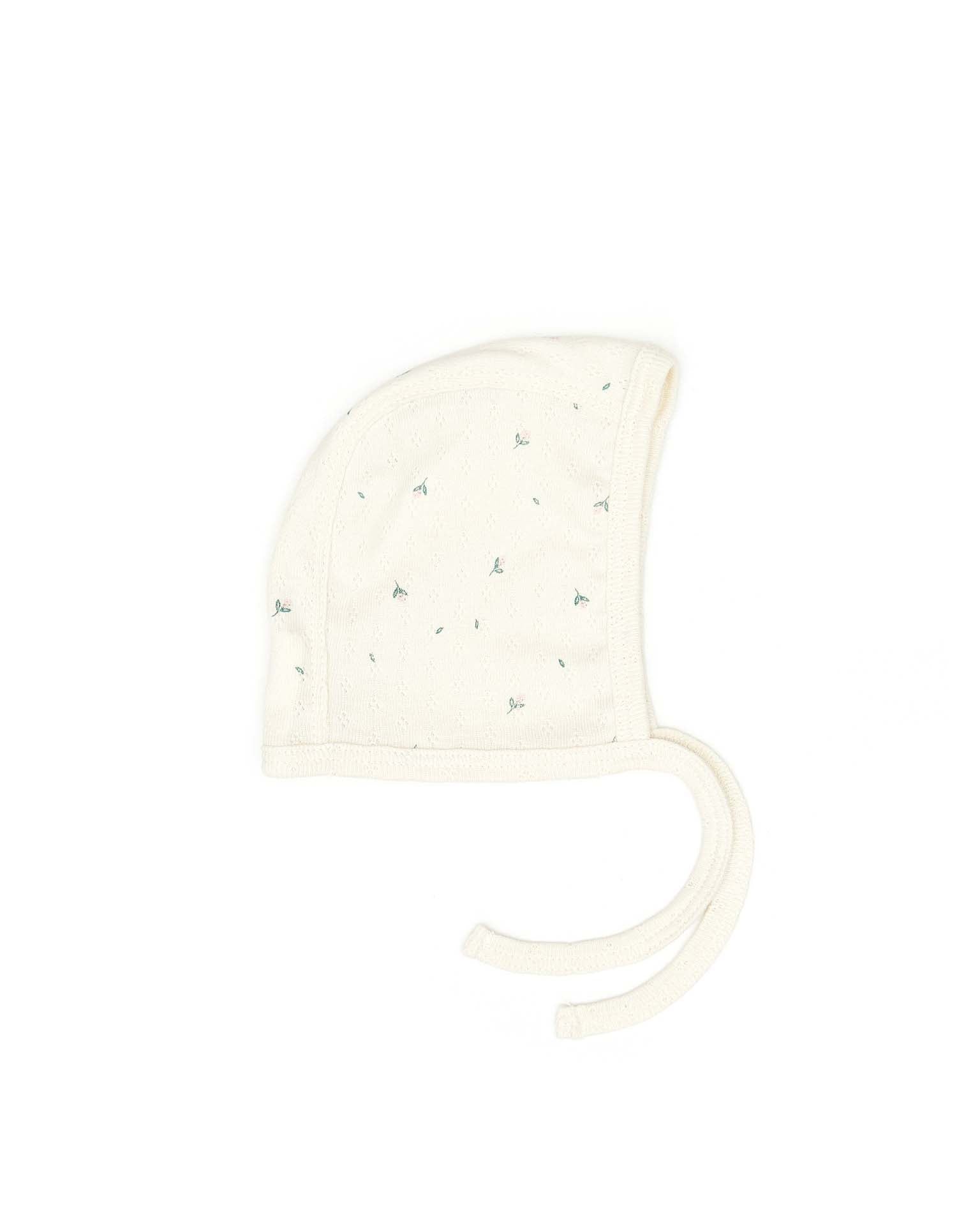 pointelle bonnet in white swan little flowers