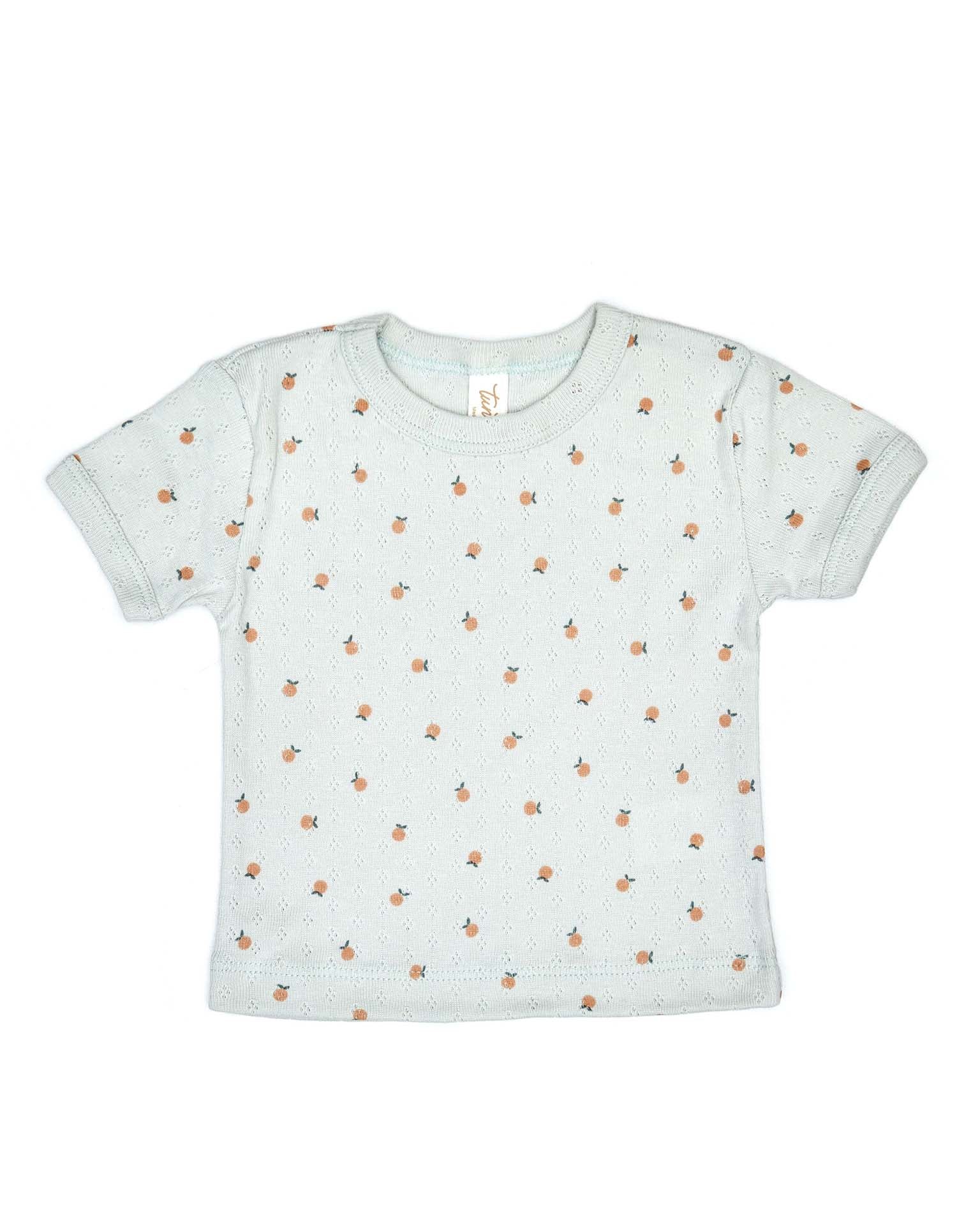 pointelle short sleeve top in light blue little oranges