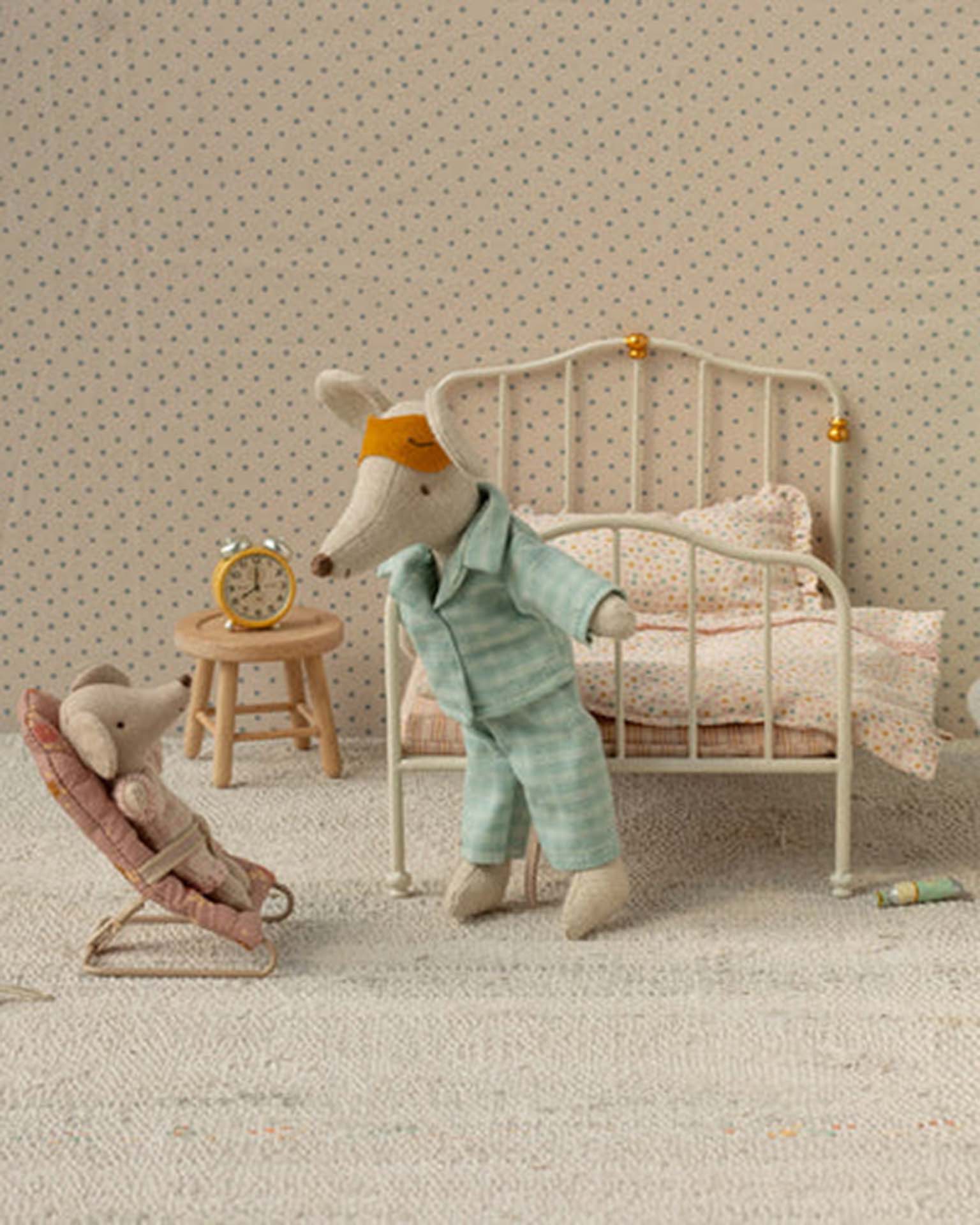 The softest pyjamas will make sure the dad mouse will have a good night's sleep and the eye mask will keep the ligths out. This set fits mice size mum and dad perfectly.