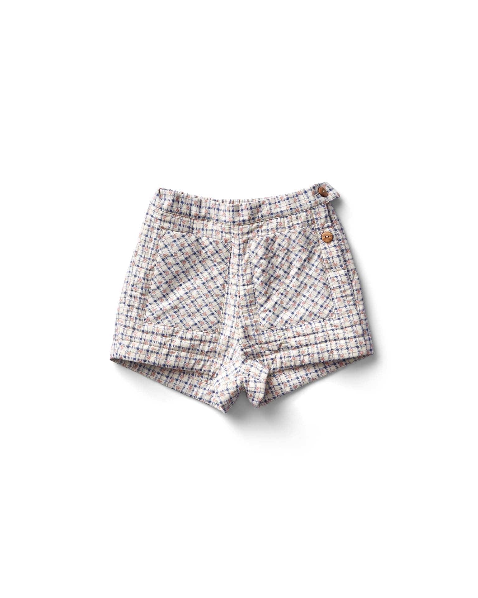 quinn short in checker rose print, blueberry