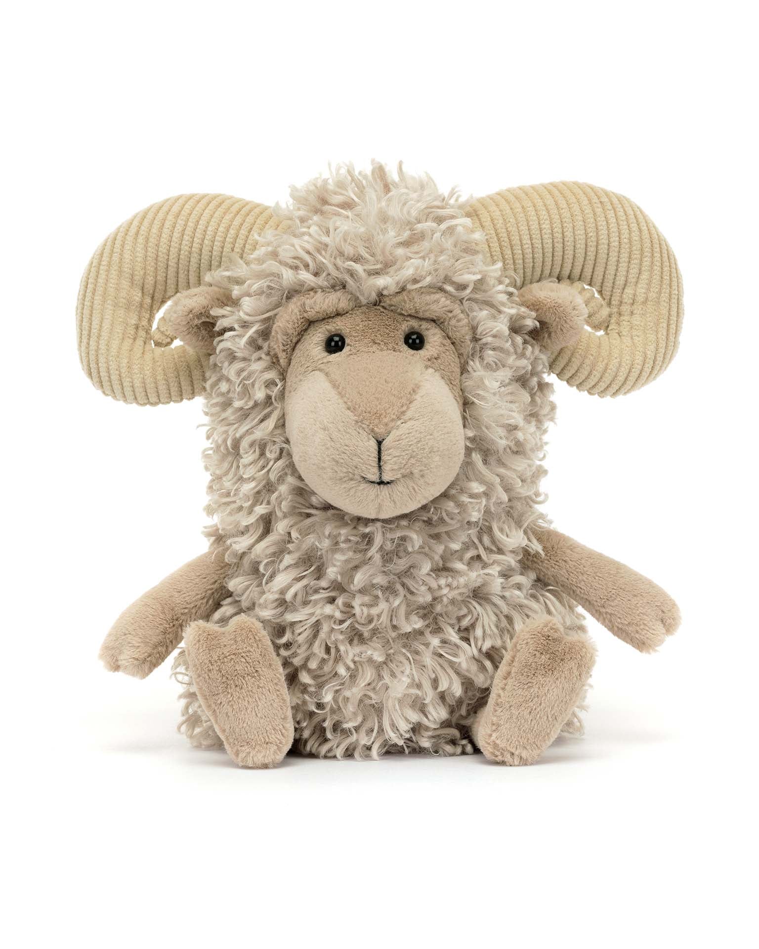 Ramsley Sheep is the littlest bighorn in the herd. With a coat of tousled, textured beige fur and soft beige limbs with cloven hooves, Ramsley has an expressive face and large, curly cord horns. The perfect companion for any hiker or wanderer.